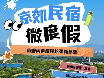 国庆假期临近,北京市文化和旅游局推出“民宿+”微度假产品,农事体验、林间漫步、非遗手作……详情>>