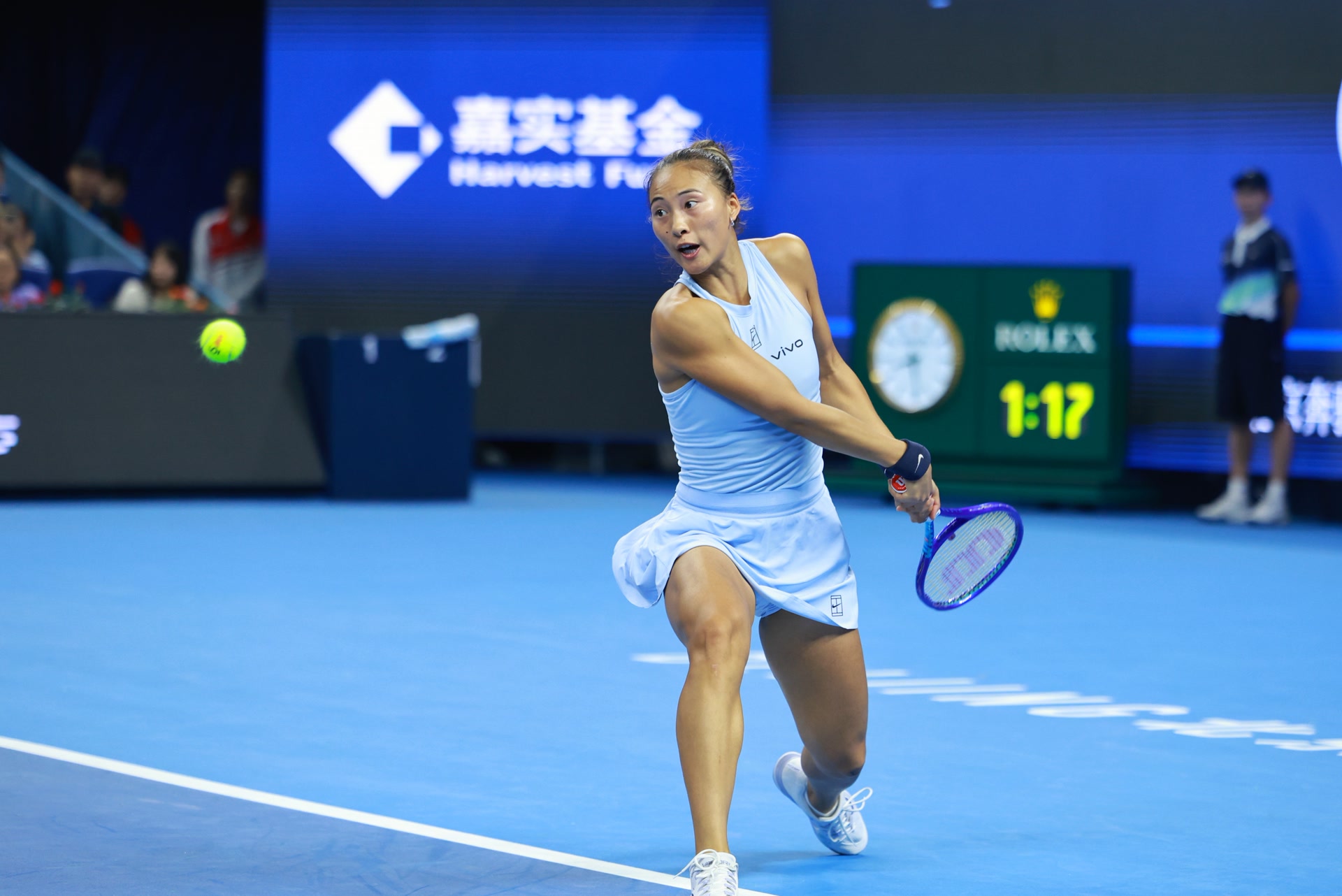 决胜盘,郑钦文在0比3落后时,因伤选择退赛。