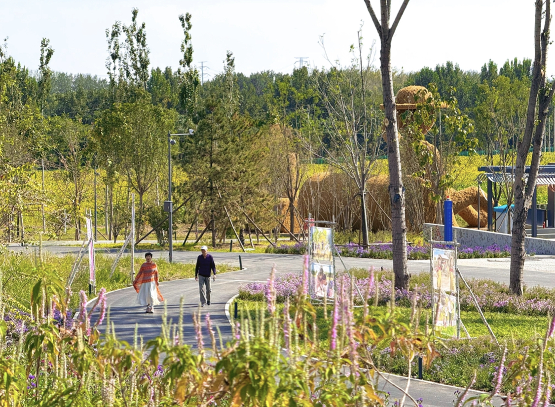 二期工程总占地面积约2.29平方公里,包括园林二期和蓄滞洪区两项工程。园林二期工程占地面积约1.2平方公里,聚焦“自然山水画廊”与“城市生活画廊”功能片区,以多样化种植和全龄友好设计,构建人与自然和谐共生的城市生态空间。蓄滞洪区占地面积约1.09平方公里,位于“河湾绿洲”组团,在保护既有农田和林地原则下,利用现状地形地势及企业、驾校等拆迁区域,进行疏挖整理和地形塑造,低干扰、景观化的建设蓄滞洪区,展示平急两用建设成果,实现100年蓄滞洪库容251万立方米,有效保障北京城市副中心防洪安全。