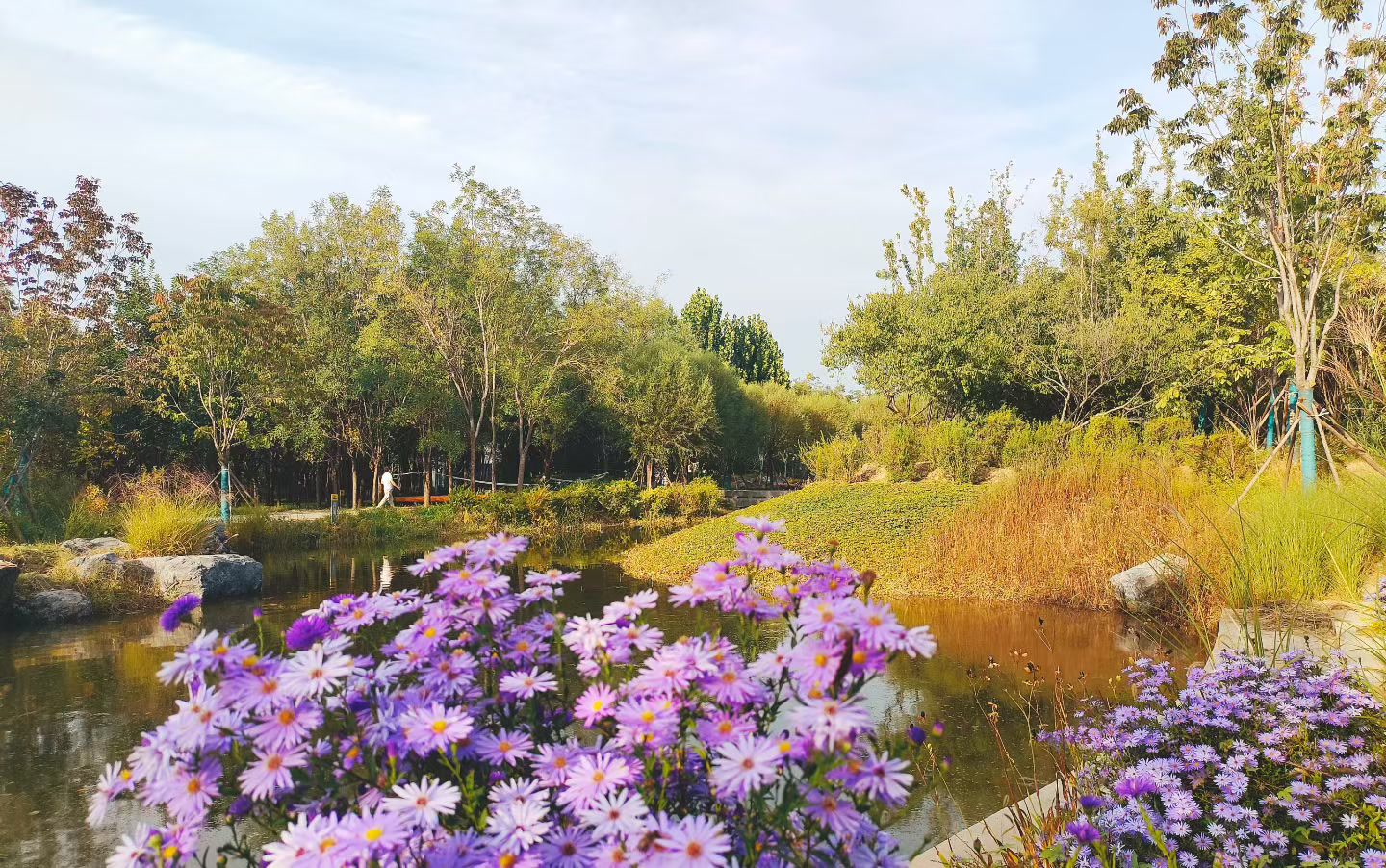 “从家走到公园只需要10多分钟。”张学诗从小就住在孙河附近,她的记忆里,由于家附近有很多砂石厂,出门经常是“雨天一身泥,晴天一身土”。从启动建设到如今全面建成,温榆河公园如期实现了“五年成型”的目标。近几年,张学诗也一直期待着公园二期开放,“主要是离家近、景色美、生态好,饭后遛弯儿很方便。”