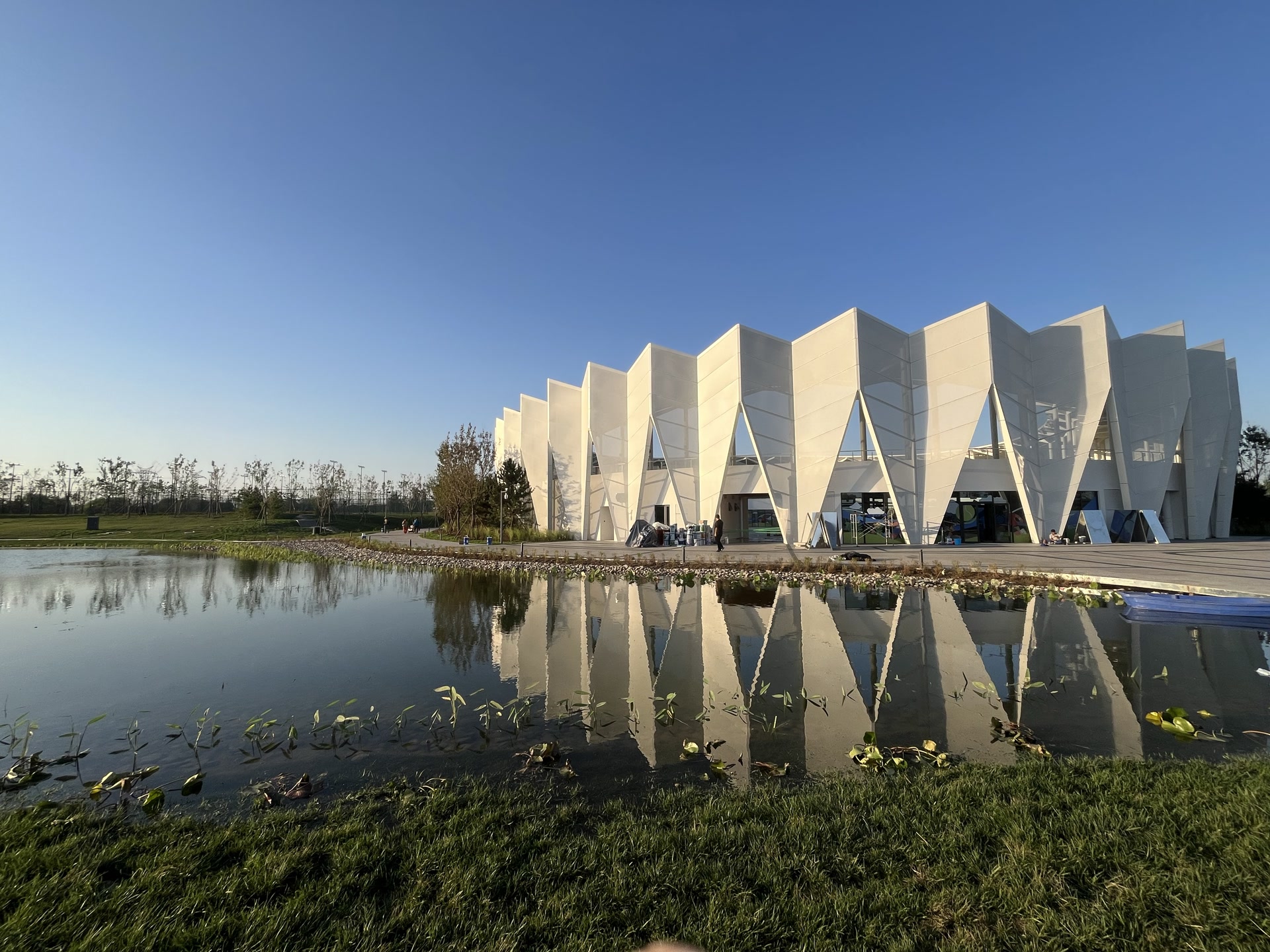 登上顺义园区最高观景台极目眺望,看得见北京奥林匹克塔等城市地标,城市天际线与园内的林田水网融合一体,美不胜收。