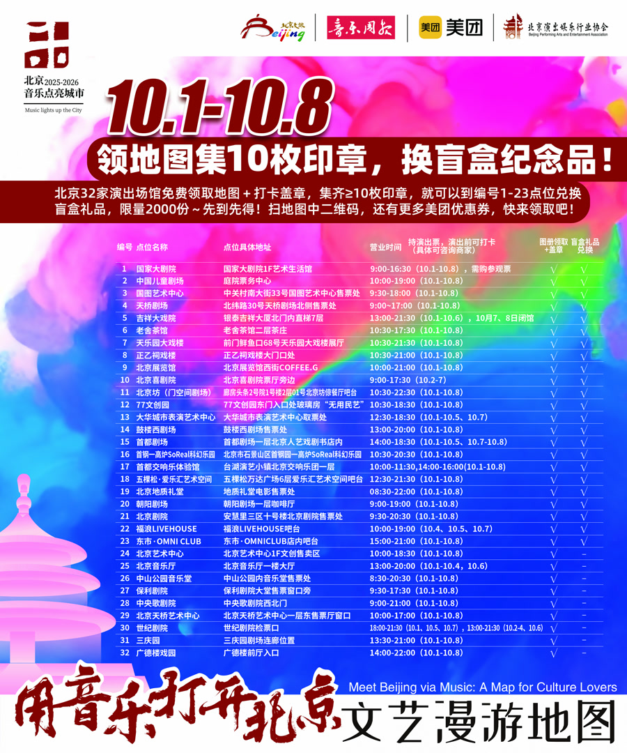 ▶ “用音乐打开北京”文艺漫游地图发布,32家场馆邀您十一打卡