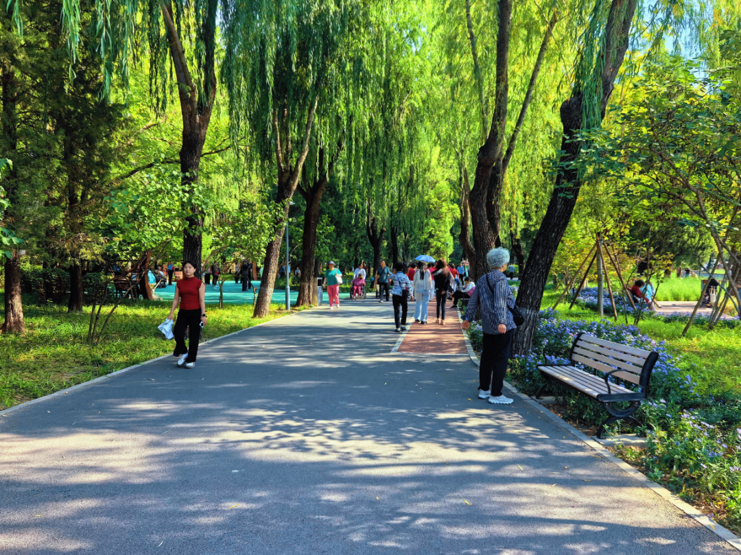 漫步公园步道,两旁茂密的柳树投下片片荫凉,草丛间点缀着小雏菊、野蔷薇、丁香等各色花卉,随手一拍皆是美景。常来散步的居民赵女士说:“公园改造后,绿植多了、花多了,环境比以前好多了。”
