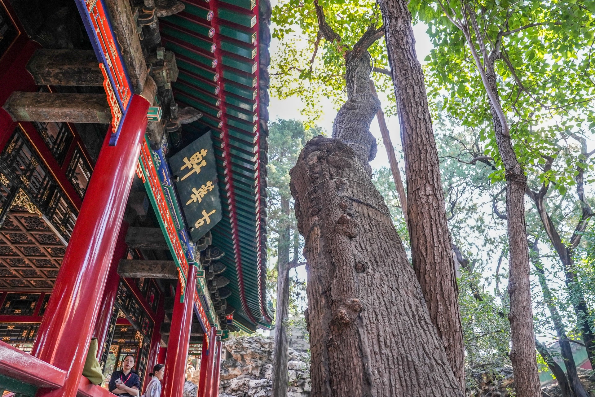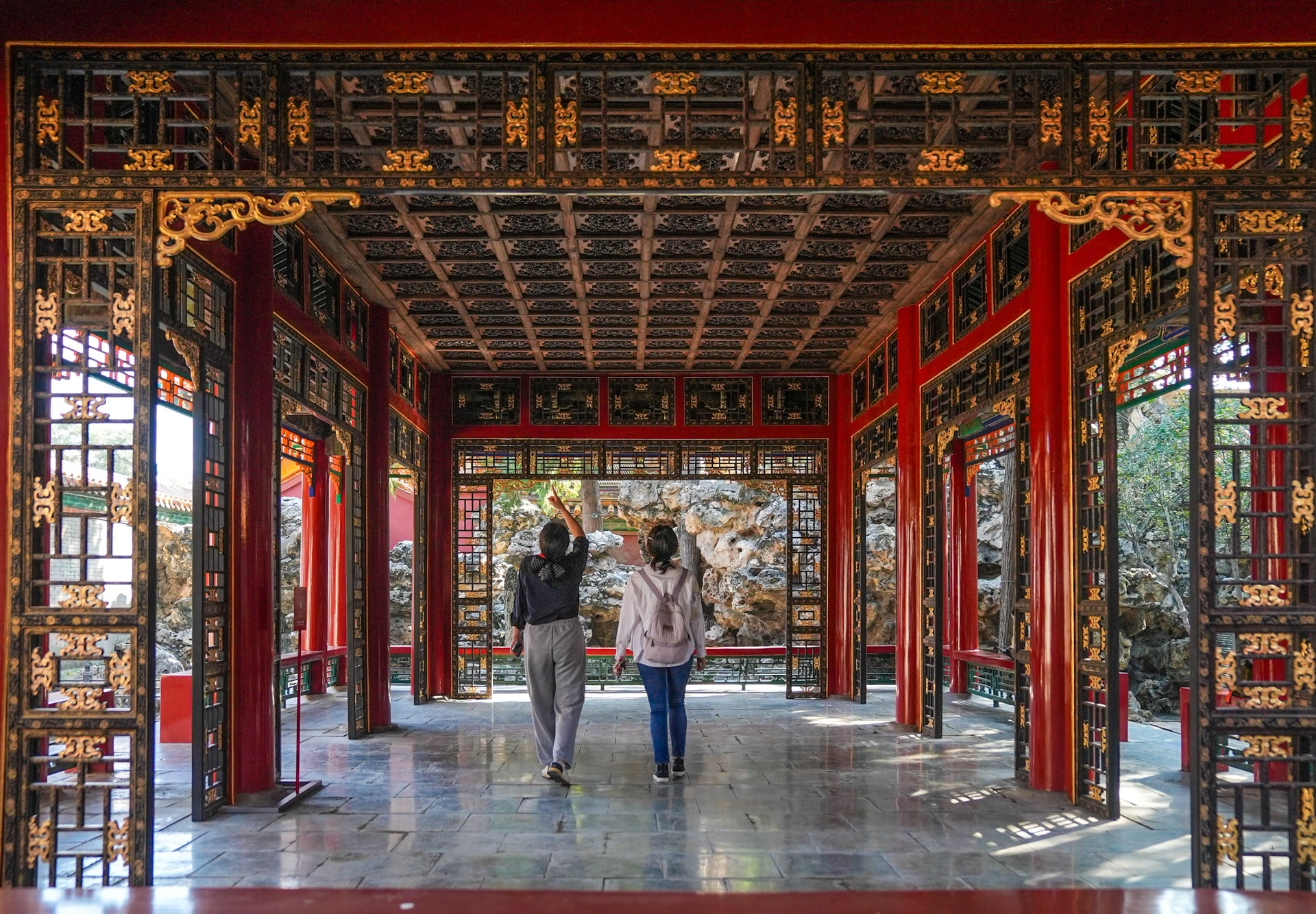 它们也有共同特点——任性。南技北引,内装改外装等“反常做法”在这座花园是常态。以古华轩为例,典型的北方宫廷建筑,红柱、高台明,但却有罕见的黑漆描金落地罩,添了一份江南书房雅韵。这种大漆工艺,多用在南方、室内。经过科学手段分析,它至少经历过7次修缮,以应对北京的气候。