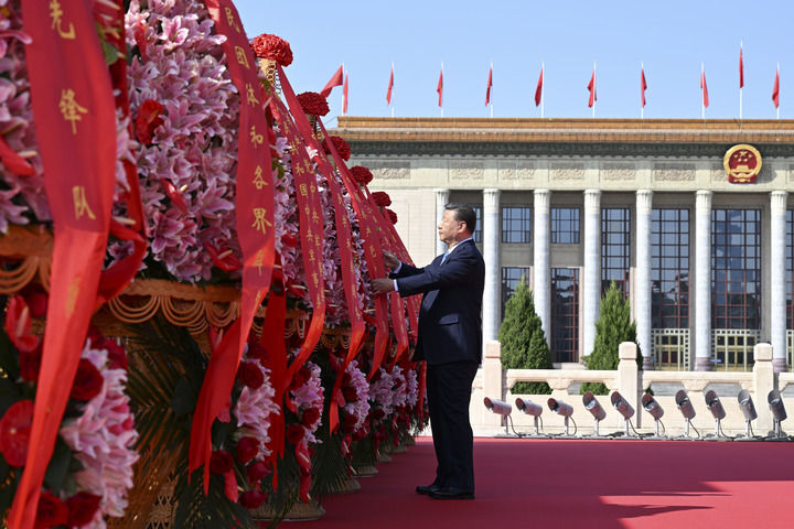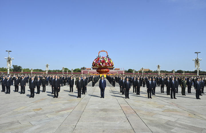 新华社北京9月30日电 铭记英烈功勋,砥砺奋斗精神。烈士纪念日向人民英雄敬献花篮仪式30日上午在北京天安门广场隆重举行。党和国家领导人习近平、李强、赵乐际、王沪宁、蔡奇、丁薛祥、李希、韩正等,同各界代表一起出席仪式。