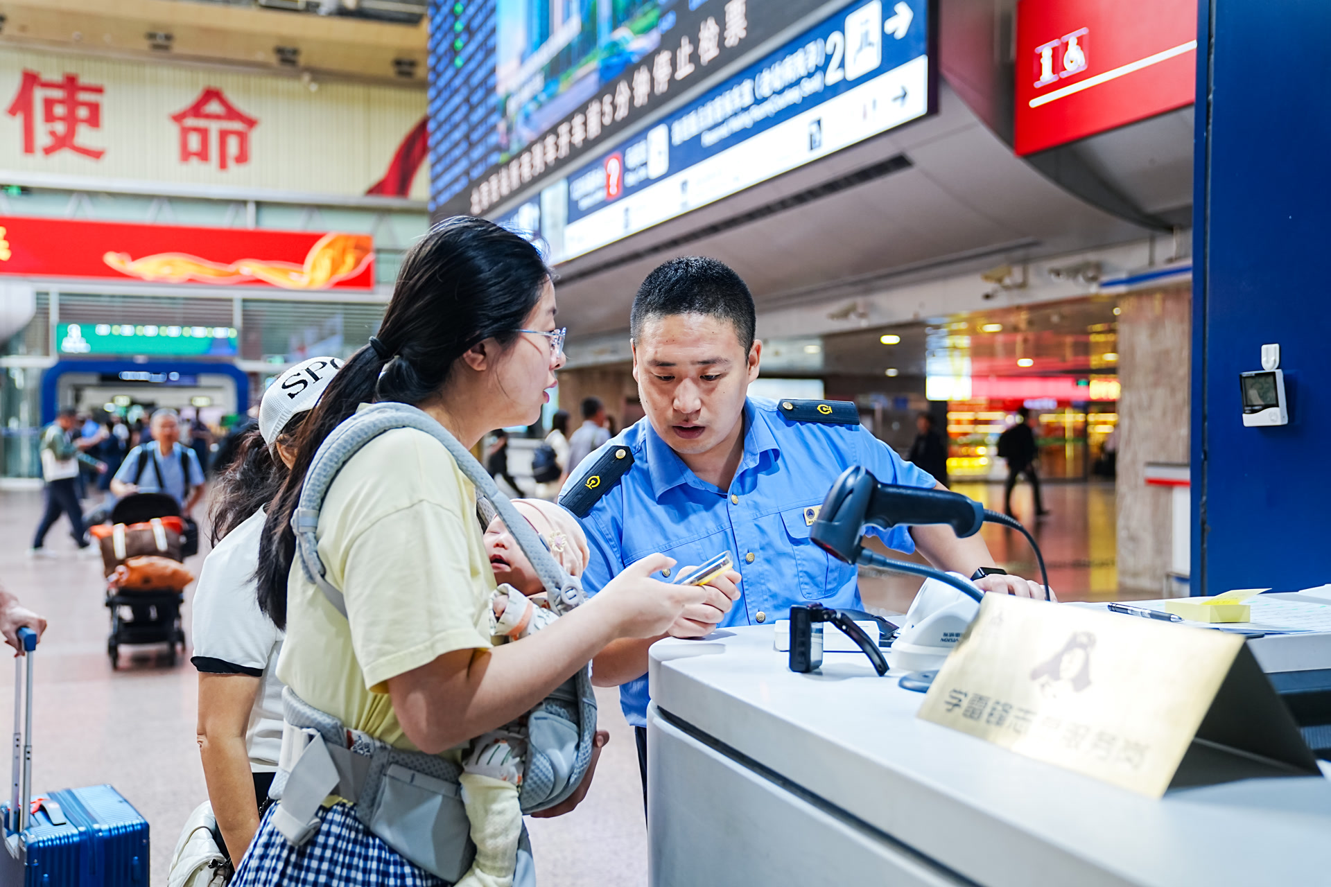 此外,北京站在进站口、候车区、检票口等关键位置完善标识系统,确保信息清晰醒目,助力旅客快速识别路线;北京西站开足安检通道和进出站验票通道数量,设置“急客和爱心通道”,动态调整候车布局,合理调整检票时间,在进出站口、候车区、站台等关键部位加强引导,保障旅客出行畅通;北京南站优化候车室内座椅布局,增加进站通道面积80余平方米,新增安检通道1条,增设安检仪1台,加装实名制验证验票闸机通道4条,更新完善引导标识,进站口通行能力提升一倍。