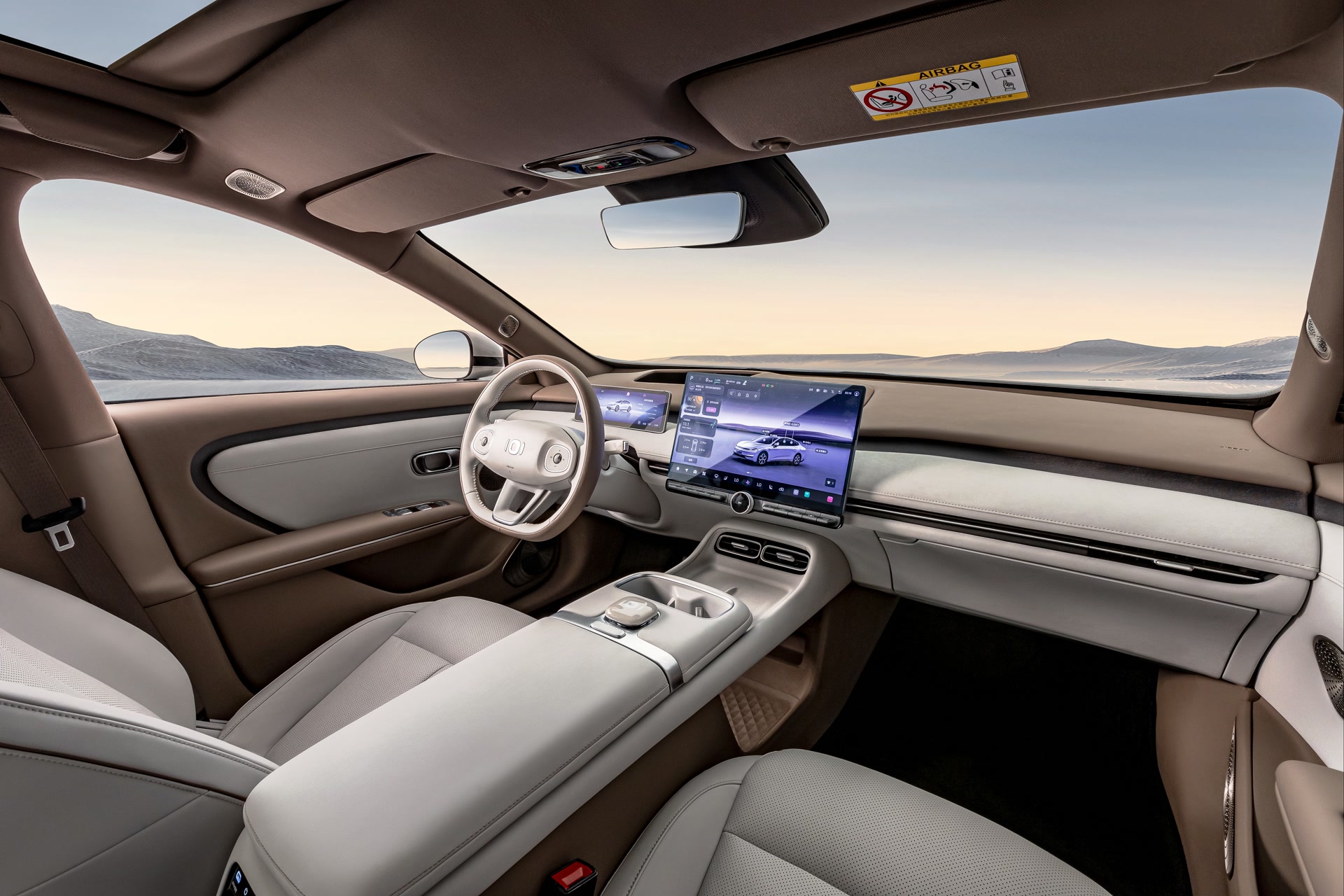 启源A06内饰采用环保设计,拥有256色氛围灯,全车软质包覆面积高达90.6%,中控屏相比启源A07更薄,边框更窄,且新系统流畅度更好,还新增了声纹录制,让车机与乘客之间的对话更亲密。新车搭载拥有20扬声器的天枢源声音响系统,支持7.1.4全景环绕声,2个头枕音响。另外,新车还配备了带有独立压缩机的冷暖冰箱,满足冷冻需求。值得一提的是,新车拥有一个智能化旋钮,支持功能自定义,支持拍一拍、按压、前后左右拨动、旋转复位多种调节方式。