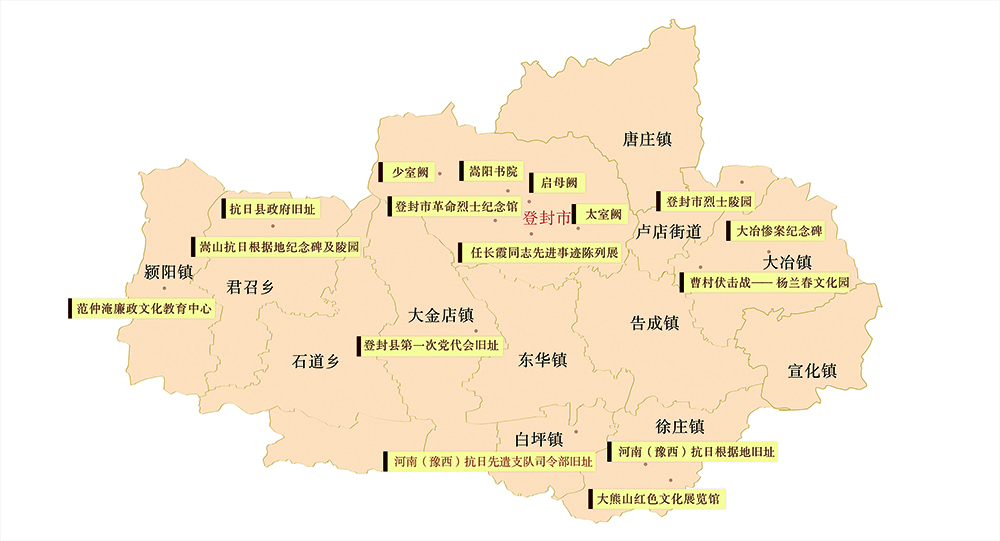 登封市主要廉洁教育场所分布示意图。登封市纪委监委供图
