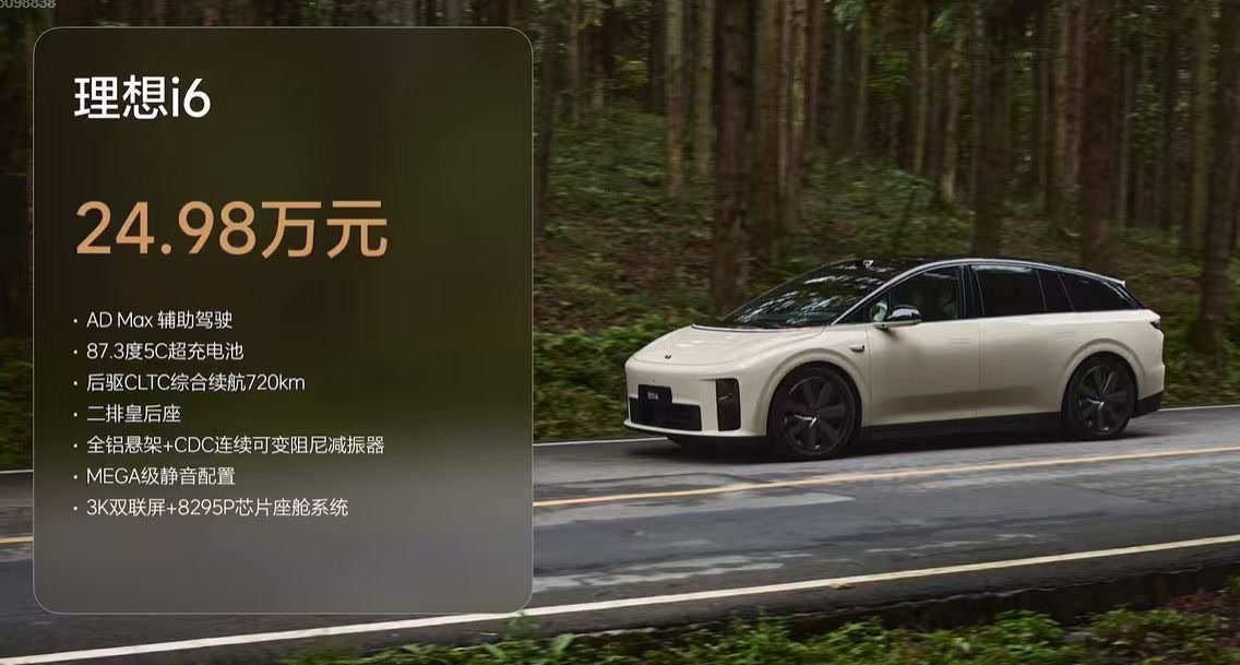 9月26日,理想全新五座纯电SUV理想i6正式上市,售价24.98万元,并于9月27日起正式开启交付。理想i6基于原生纯电架构打造,搭载5C超充电池,标配AD Max高级辅助驾驶系统。理想为i6准备了丰富的车主权益,2025年10月31日24:00前确认订购,将享受10000元的现金减免,以及双腔魔毯空气悬架、智能冷暖双用冰箱、全车静音电吸门的免费赠送权益。此外,理想老车主复购还可享更多权益。