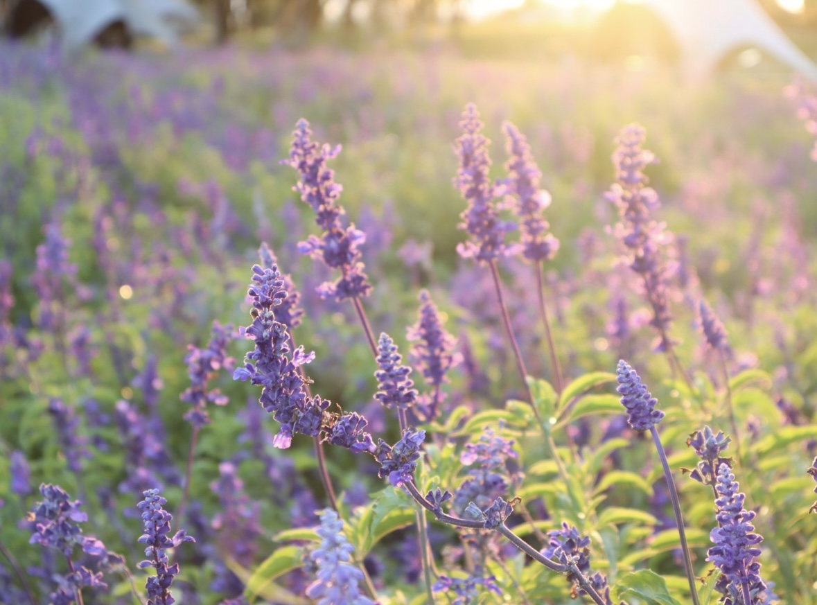 绵延如浪的粉黛乱子草、薰衣草、紫菀交织出一片梦幻的粉紫色海洋;串红和美人蕉红得热烈;还有金灿灿的向日葵和油菜花。在丰台区的紫谷伊甸园景区,200多亩花海正绚烂绽放。