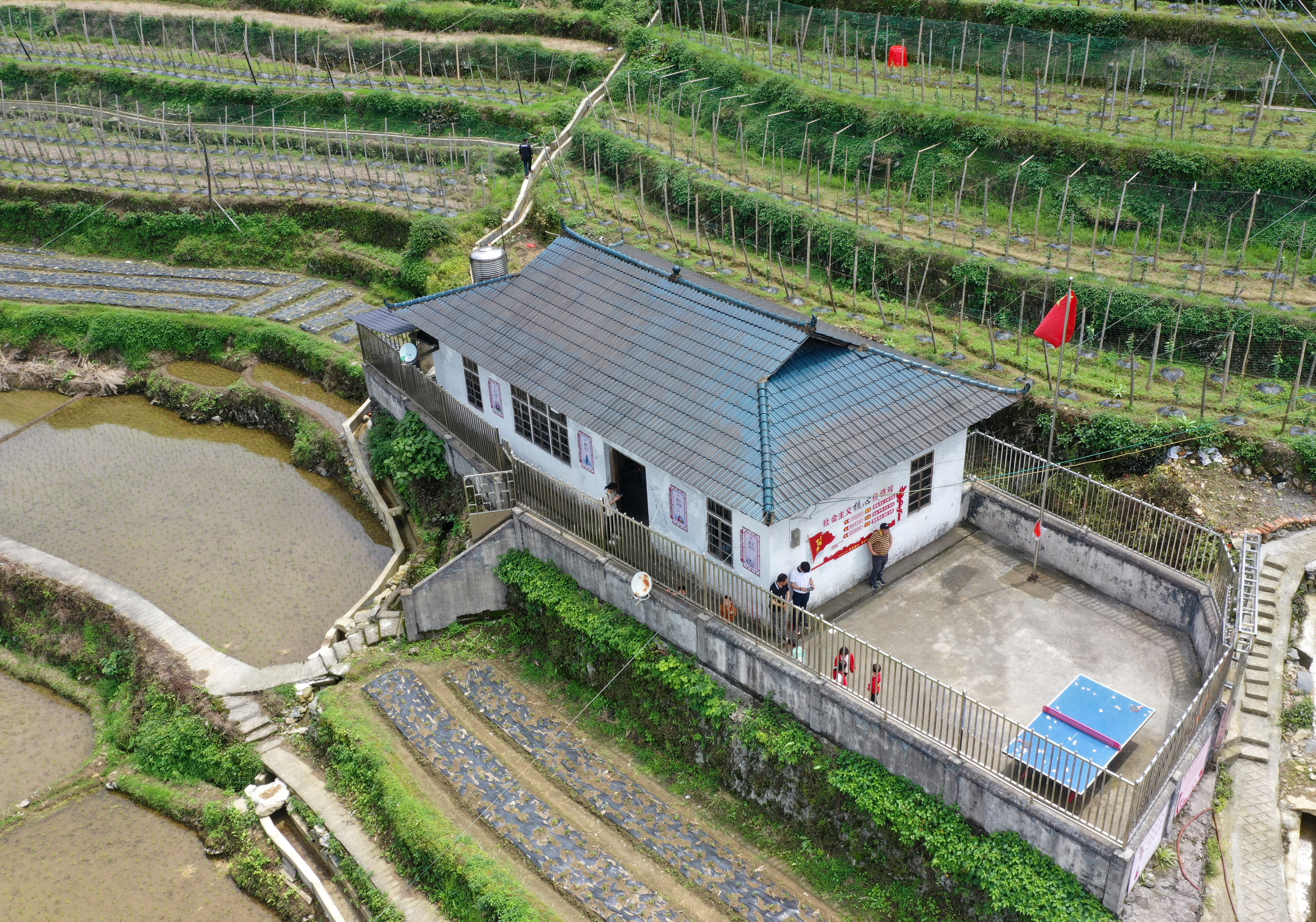 广西全州县蕉江瑶族乡苦马田教学点是一所偏远的大山学校,距离全州县城1个半小时的车程。2016年4月28日,我到这里采访时,学校条件相对简陋,只有两间泥瓦结构的校舍。校园虽狭小,但学校依然立有不锈钢旗杆,时任老师卢加红带着学生们在这里举行升国旗仪式。