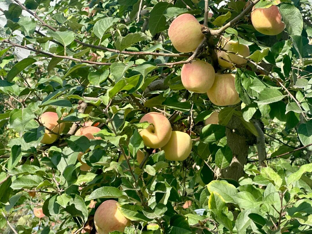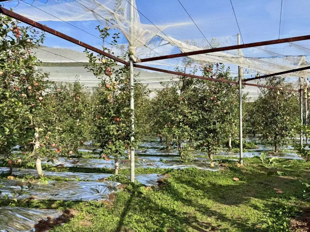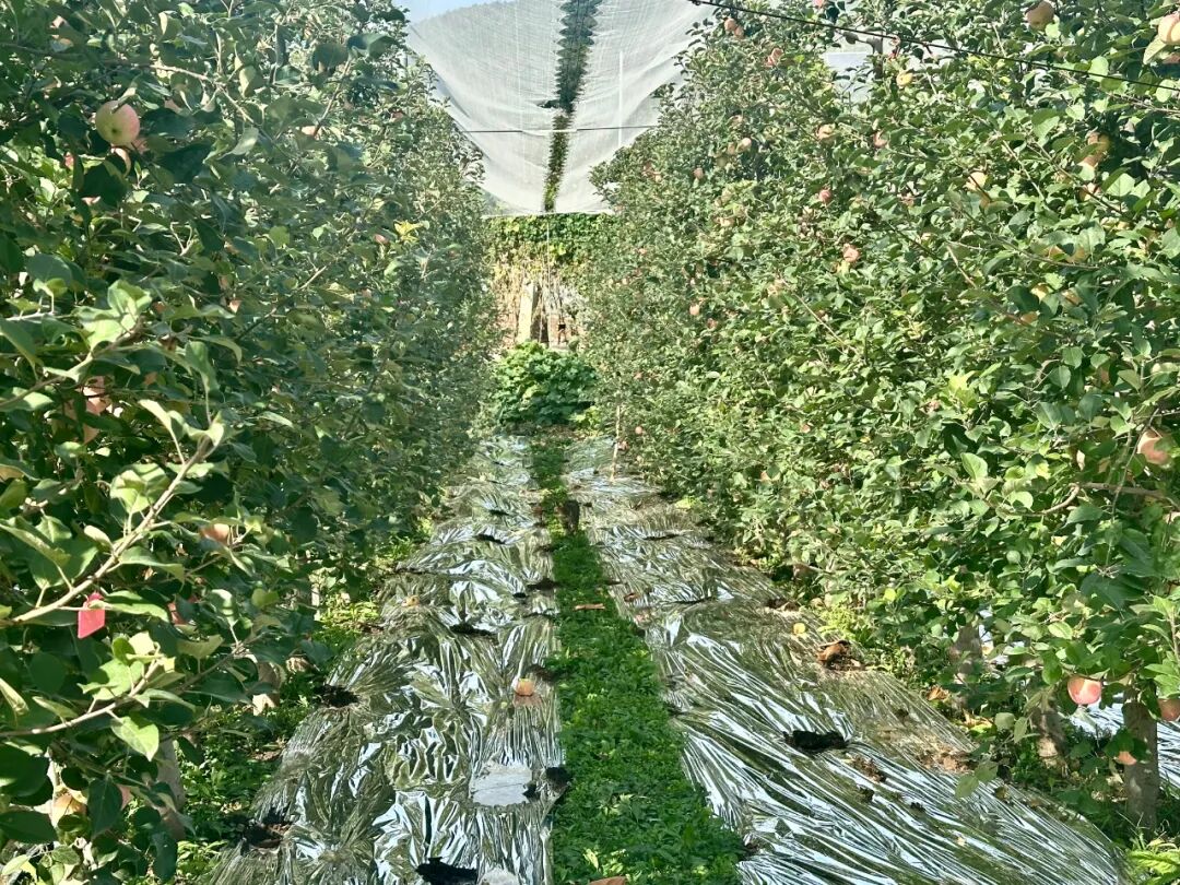 昌平苹果的美好风味来源于多年培育和技术更新。当前,昌平区优质果园主要采用矮化密植栽培模式,结合细纺锤形树体结构,有效提高了果园的通风透光性,增加产量。果树下大面积铺设银色反光膜,利用太阳光反射增加下部光照强度,提升果实品质。果园内还搭建了防雹网系统,显著增强抵御自然灾害的能力。通过精细化管理,昌平苹果在甜度和风味方面表现突出。