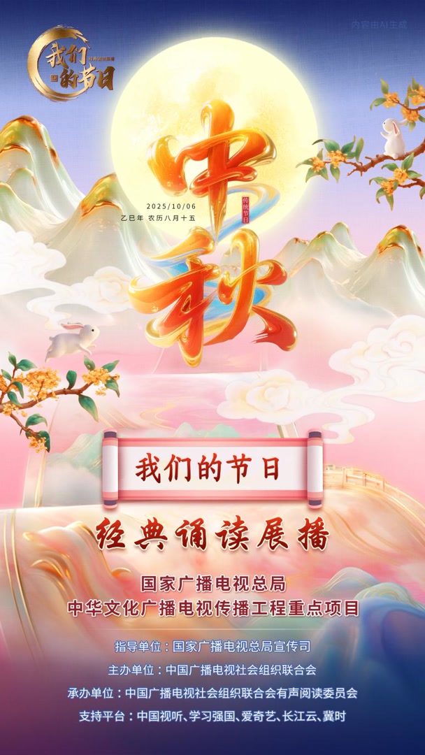 “我们的节日——经典诵读展播”中秋篇专题节目日前正式上线,节目以“佳节明月夜,天涯共此时”为主题,通过名家诵读的诗意表达、民俗专家的深度解读,为听众打造一场兼具文化深度与情感温度的中秋视听盛宴。