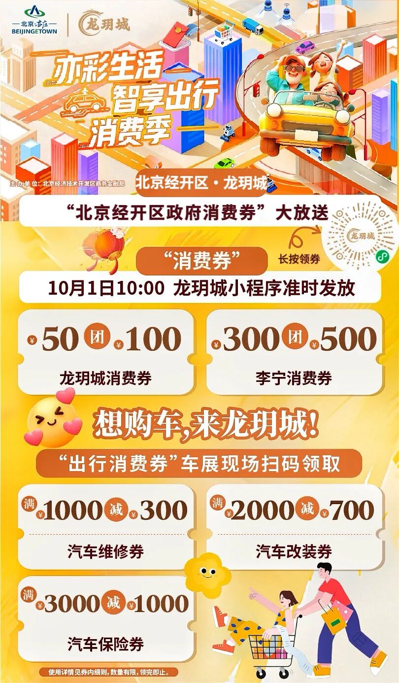 10月1日,北京经济技术开发区(北京亦庄)“亦彩生活·智享出行消费季”将拉开帷幕!具体怎么参与?小亦整理好啦↓↓↓