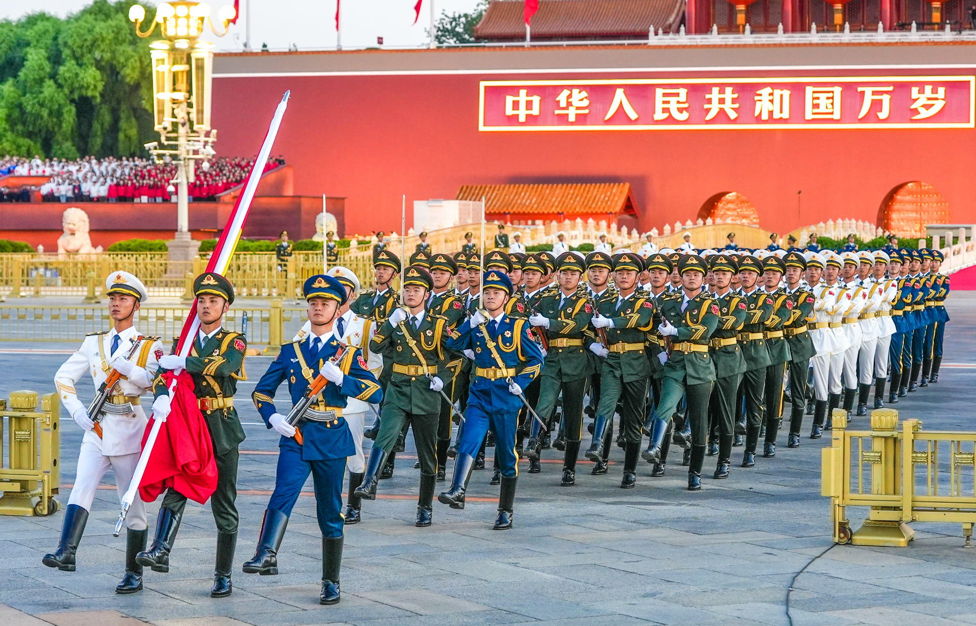 站在第一排的张子旺,手中挥舞着五星红旗,不时望向天安门城楼。每逢“五一”“十一”等节日,他都会来到天安门广场看升旗。这次已是他第20次来到广场看升旗。“每次看升国旗仪式,国旗护卫队铿锵有力的步伐,都让我感受到强大的力量感。今天是新中国的生日,祝福国家繁荣昌盛!”