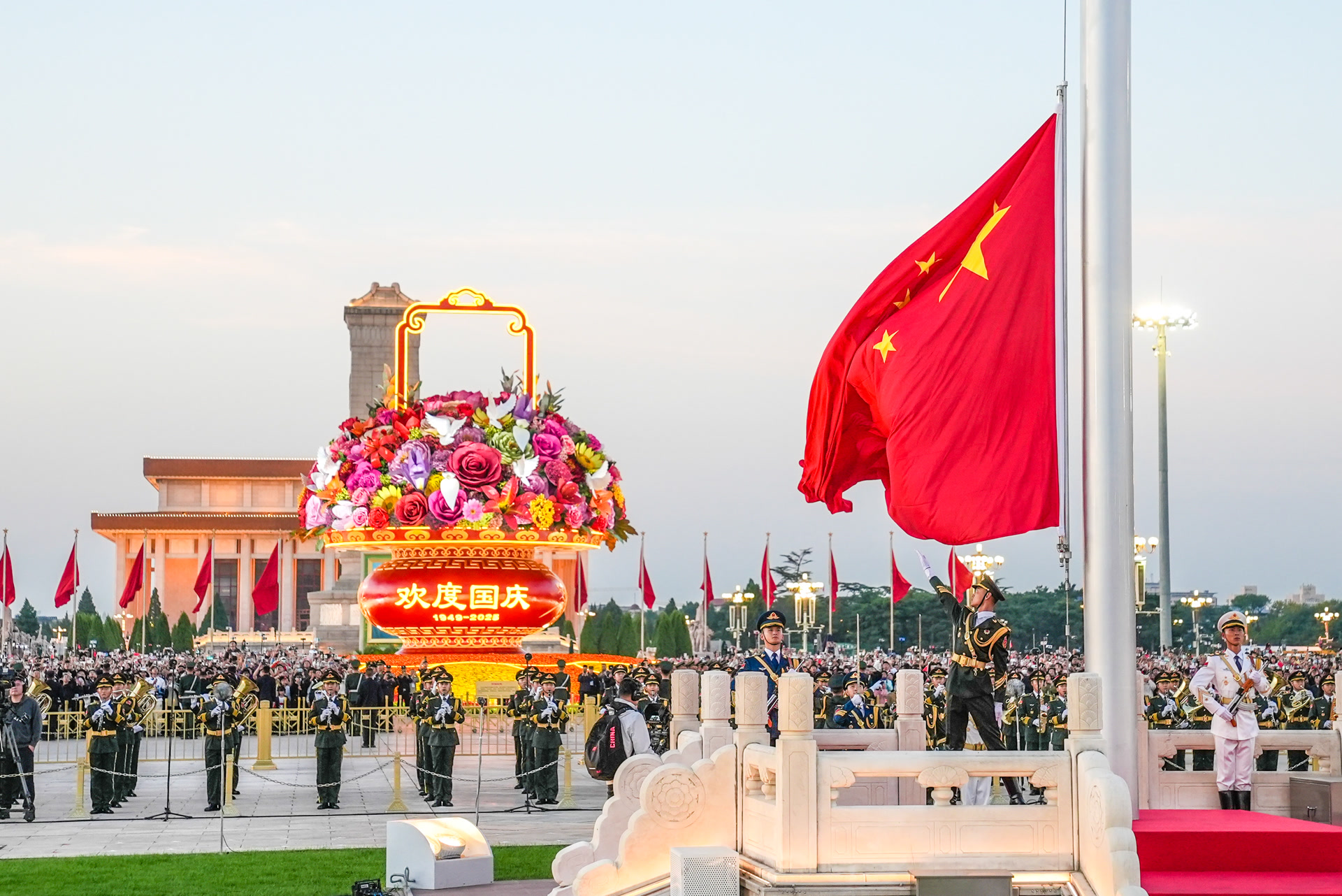 今天清晨,来自全国各地的12.1万名各界群众汇聚在天安门广场,观看隆重的升国旗仪式,共同庆祝中华人民共和国成立76周年。大家齐唱国歌,共同见证五星红旗冉冉升起。