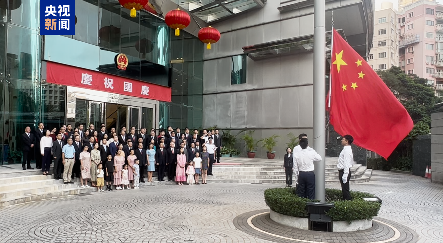 △10月1日7时,外交部驻香港特别行政区特派员公署举行升旗仪式,庆祝新中国成立76周年。
