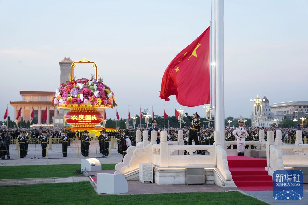 10月1日清晨,隆重的升国旗仪式在北京天安门广场举行,庆祝中华人民共和国成立76周年。