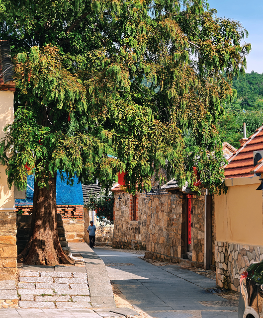 放眼望去,满目青翠之间,古朴的石头墙、成片的红瓦房静静伫立,让人不自觉地放松下来,放慢脚步,沉浸在这片宁静中。