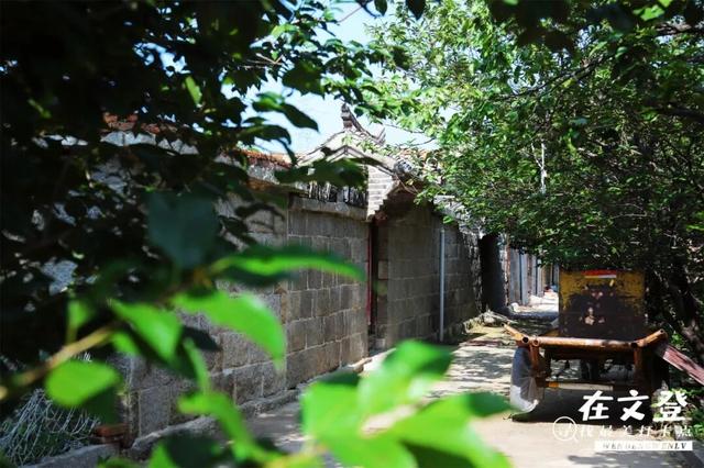 走进梧桐庵村,一眼就能望见村口的古朴石碑,上面刻着“梧桐庵”三个醒目的红字。远处的昆嵛山静静绵延在天际,近处是黑瓦石墙的老屋,错落掩映在绿树之间,整个村庄透出一种宁静质朴的田园气息。