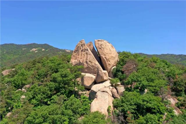 三瓣石村坐落在昆嵛山前。从村里往北山望去,草木掩映间藏着一块桃子形状的巨石,石头的顶部自然裂成三瓣,像是天工巧琢而成,村民都叫它“三瓣石”。它静静立在昆嵛山中,如同一位沉默的守护者,看顾着这一方水土。