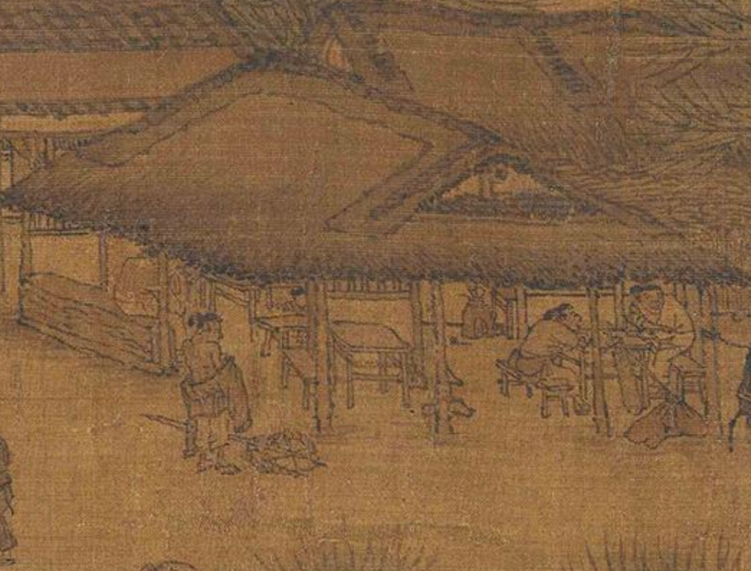 前人也提出过这个观点,明代南京礼部尚书邵宝就曾指出,这幅画的主题是“明盛忧危之志”,画中的种种情节令人“触于目而警于心”。细看这幅画中,有一些令人触目惊心之处。比如靠近卷首处,张择端画了一个穷汉,站在茶摊前,他想喝一碗茶,但脱光了上衣都没找出一文钱。