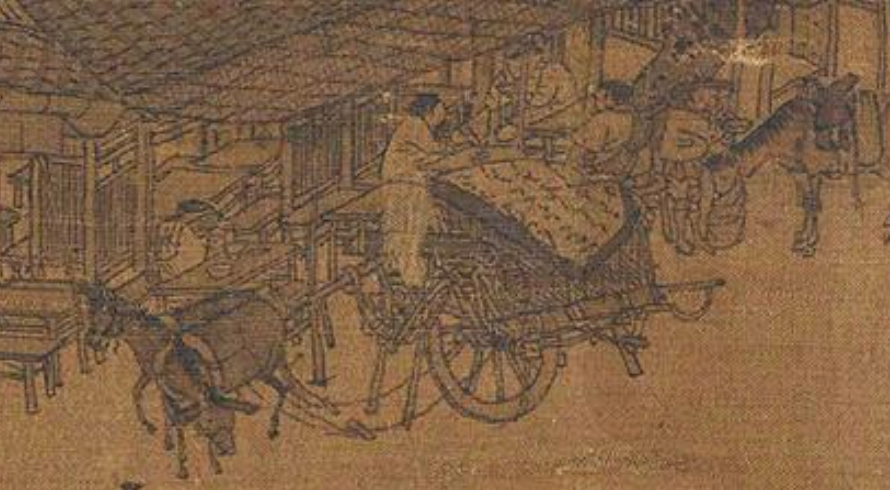 故宫博物院研究室原主任、美术史家余辉解读过一个细节:图中画了两处推车,推车上盖的苫布并非普通布匹,而是写满了草书大字。他认为,这应该是大户人家屏风上的布,书法作品是贴在屏风上的,丢弃后,被老百姓捡来再度利用。这些屏风为什么被丢弃?更重要的是,为什么张择端要两次画出这样的细节?