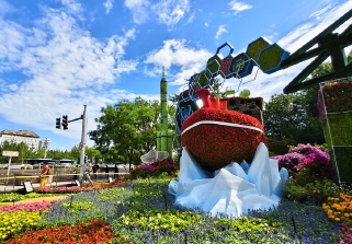 为庆祝新中国成立76周年,营造隆重热烈、喜庆祥和的节日氛围,西城区在区主干路网、重点地区、区属公园及滨水绿道等区域进行花卉改造布置。本次花卉布置工作以环境美化与可持续利用为宗旨,其中3组主题立体花坛,通过对细节元素和植物花卉进行局部更换调整,保障在节日期间呈现最佳效果,营造“繁花似锦祝祖国,花漾生活绽新颜”的国庆氛围。