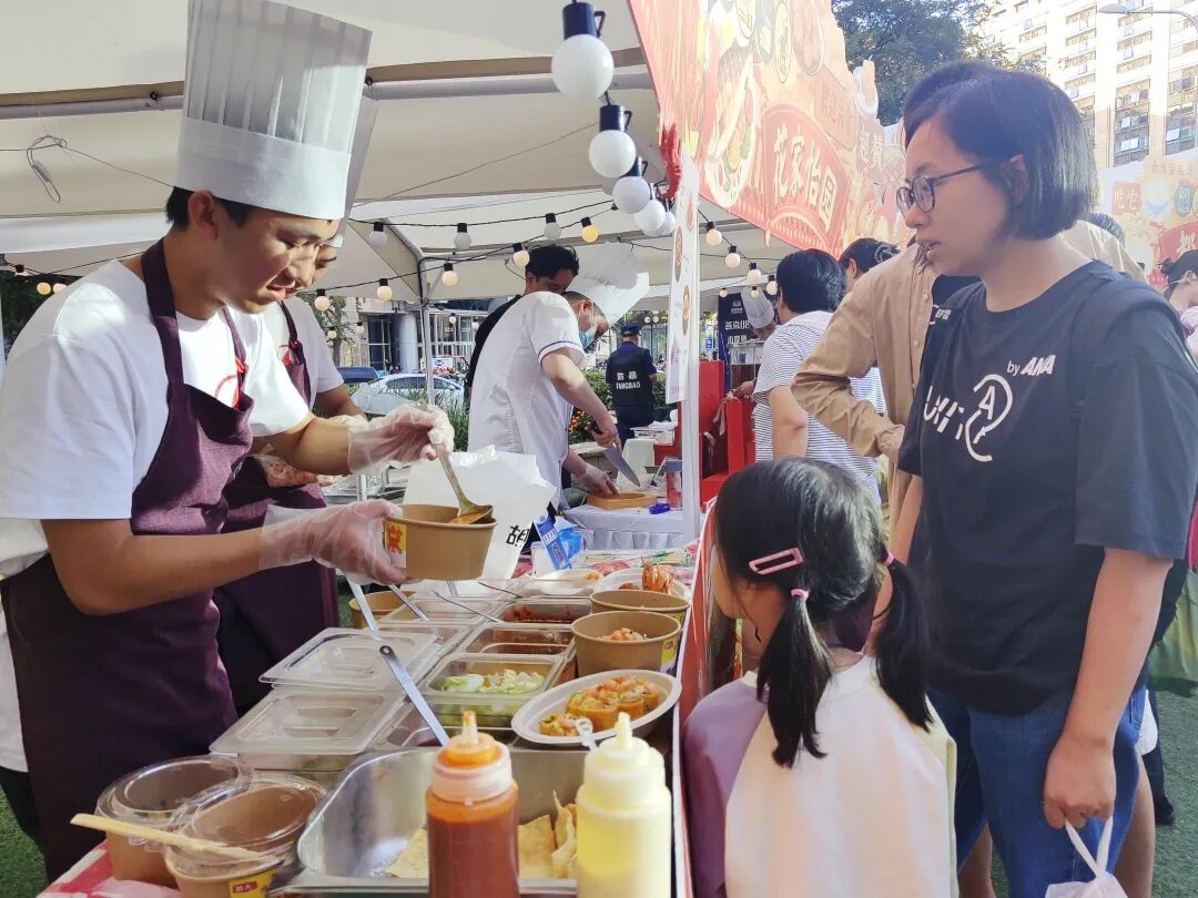 活动现场还设置亲子手工区,家长可带孩子体验非遗小技艺。傍晚的落日放映厅播放温情影片,搭配书法老师手写的“中秋团圆”“国庆安康”祝福,让“逛吃”升级为沉浸式文化体验。