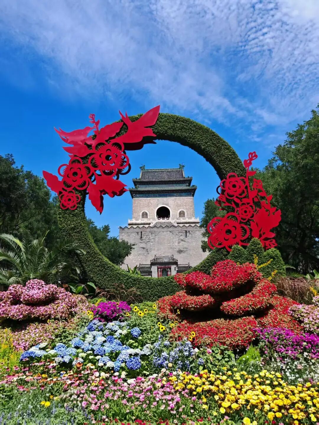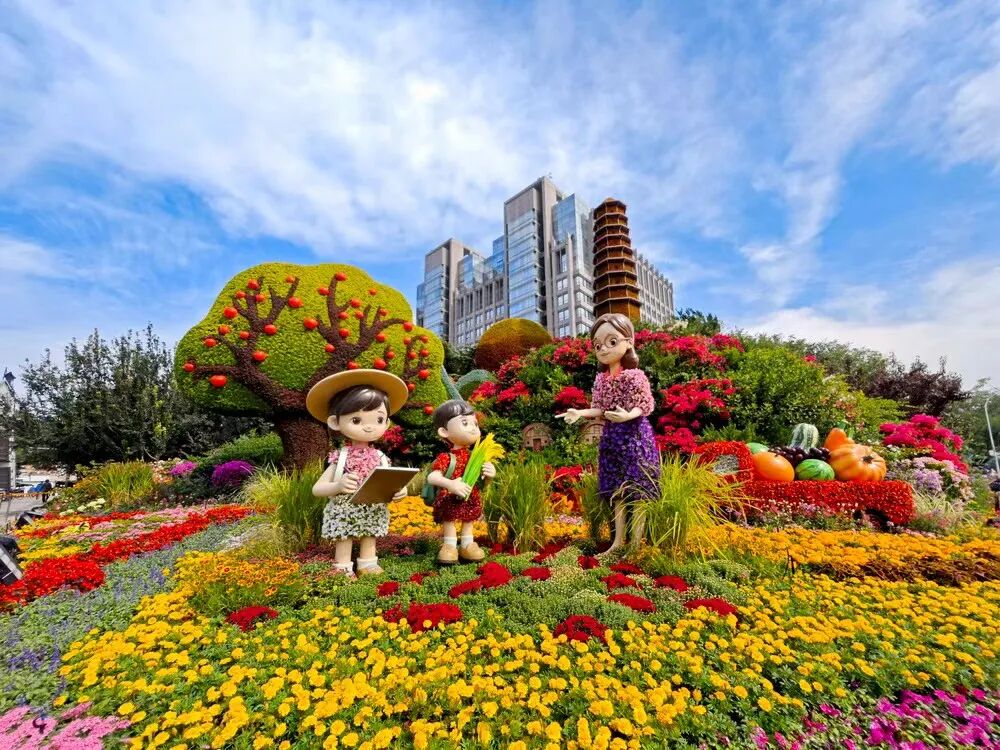 国庆节前夕,东城区如期完成花卉布置工作,共栽摆花卉60余万株(盆),总面积1.3万平方米,以绚烂花景向盛典致敬,营造出喜庆热烈的节日氛围。