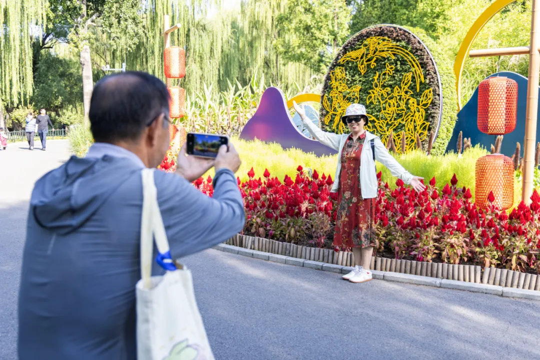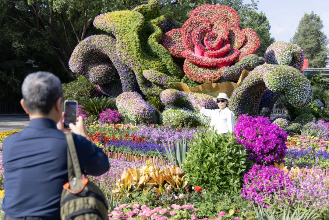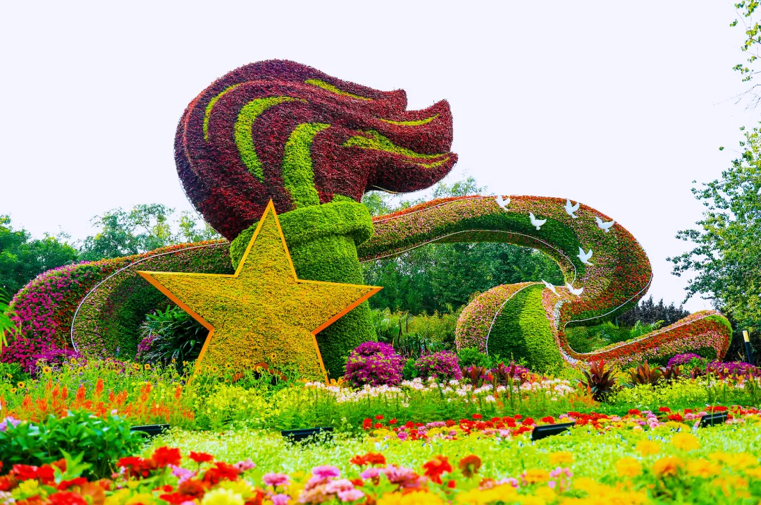“我们的祖国是花园”巨型玫瑰主题花坛