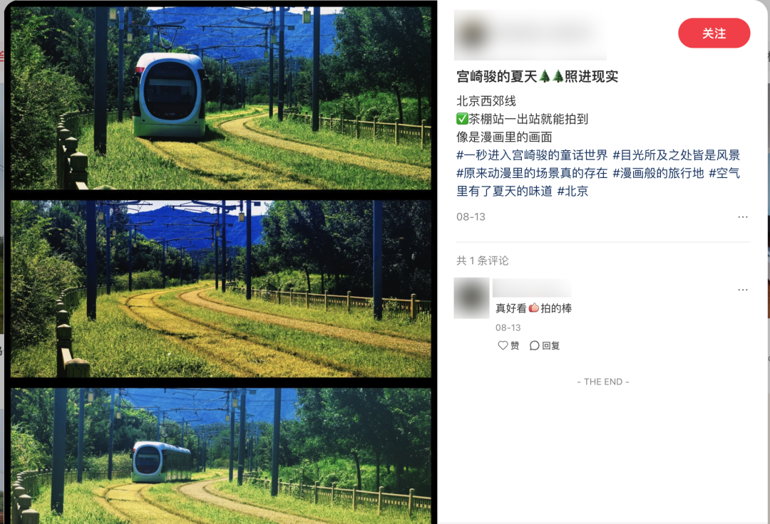 乘坐地铁在十号线万柳站换乘西郊线。被称为“最美西郊线”实至名归,车窗就是移动观景台,氛围感直接拉满,窗外的每一帧都是风景大片!看看社交媒体上刷屏的美照就知道它有多出片了!若想体验更接地气的方式,挑一个公交靠窗位,让身心随着城市节奏缓缓驶到香山,也是独一份的浪漫。