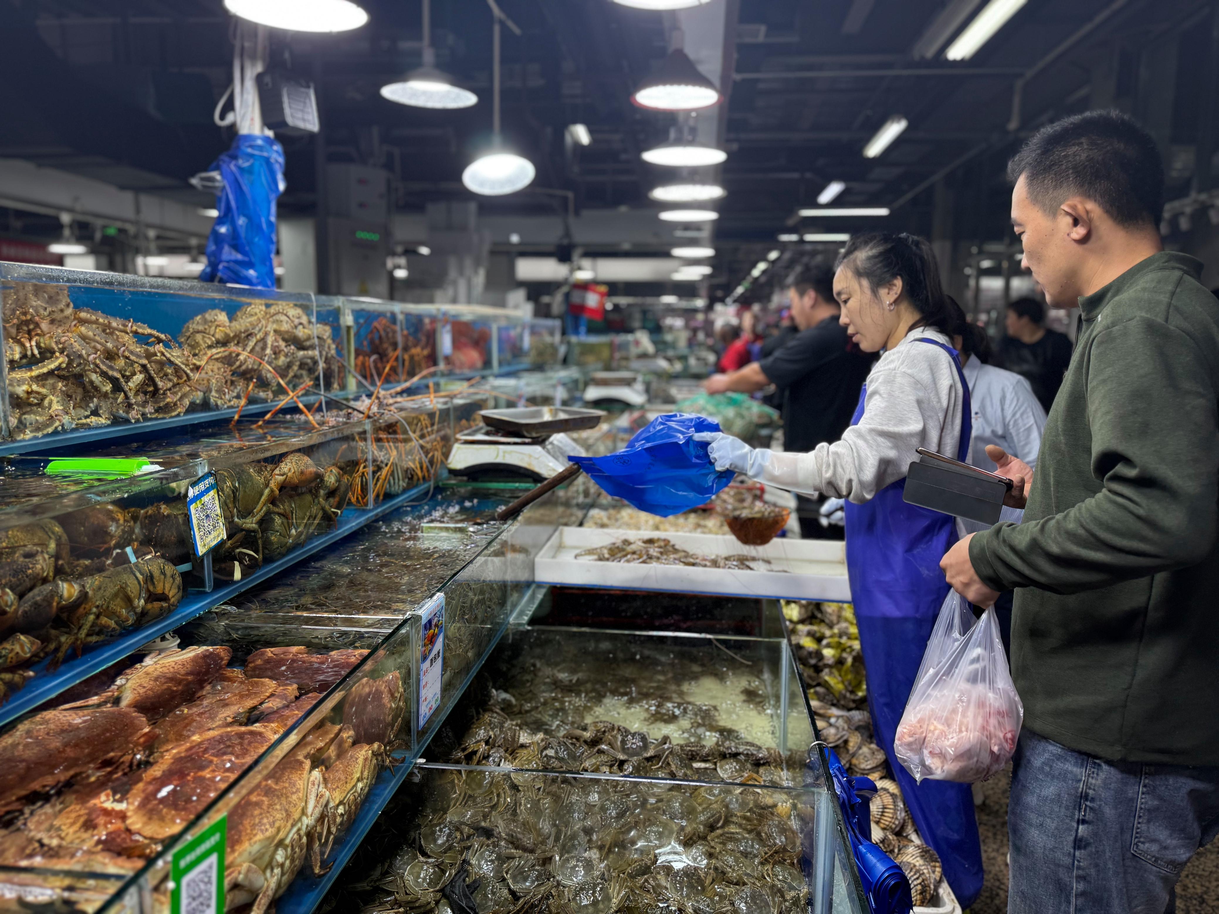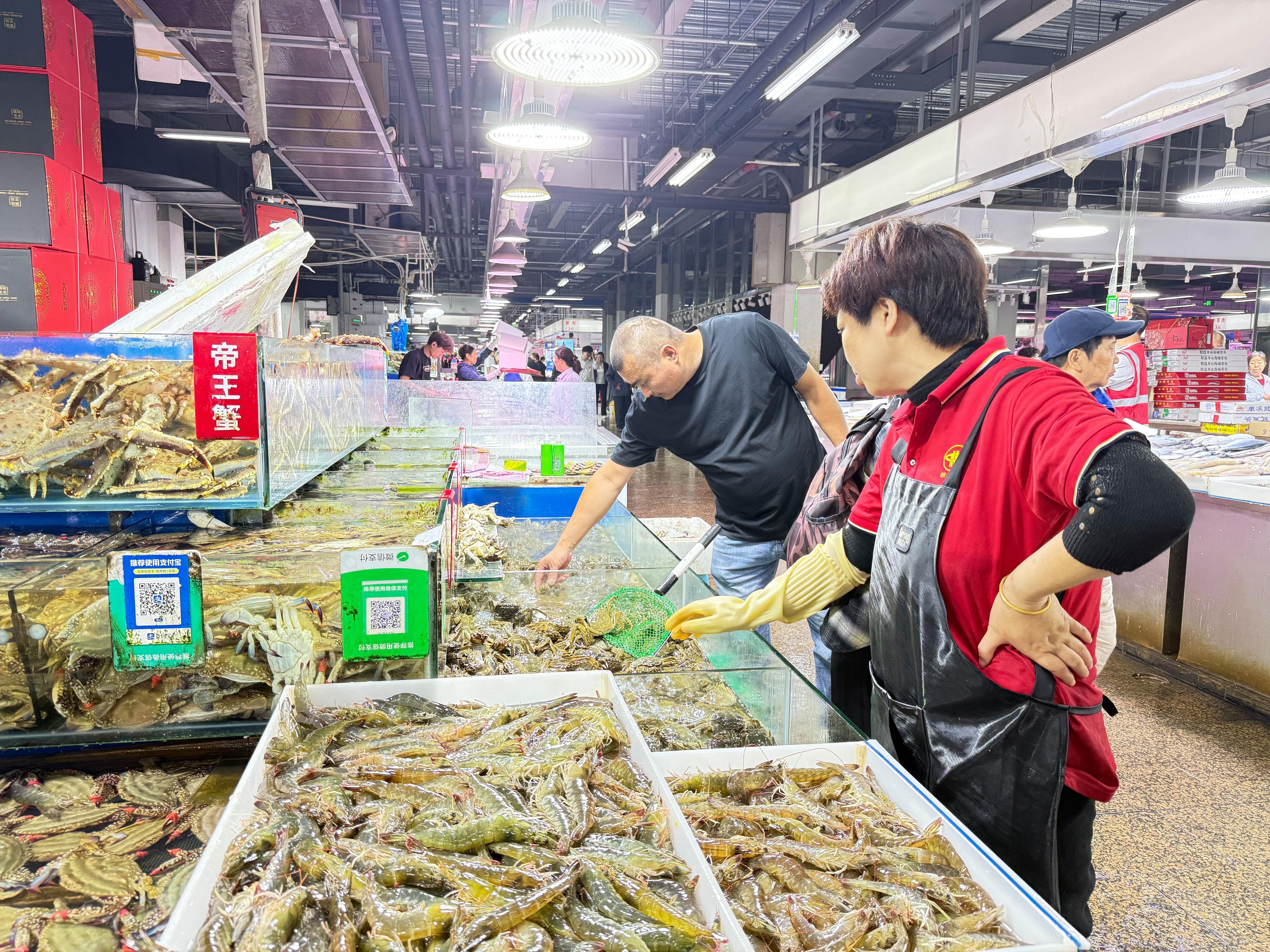 10月1日,记者从新发地获悉,市场加大各类农产品进场量,确保首都市民节日供应的总量充足、品种丰富。自九月份开海以来,海鲜品类明显增加,鱼虾蟹贝共增加了几十上百种,市场带来了久违的海洋鲜味,其中,海参、鲍鱼、梭子蟹、带鱼、海白虾的销量比较领先。市场每天海鲜水产交易量超过2000吨,比平时高出30%。