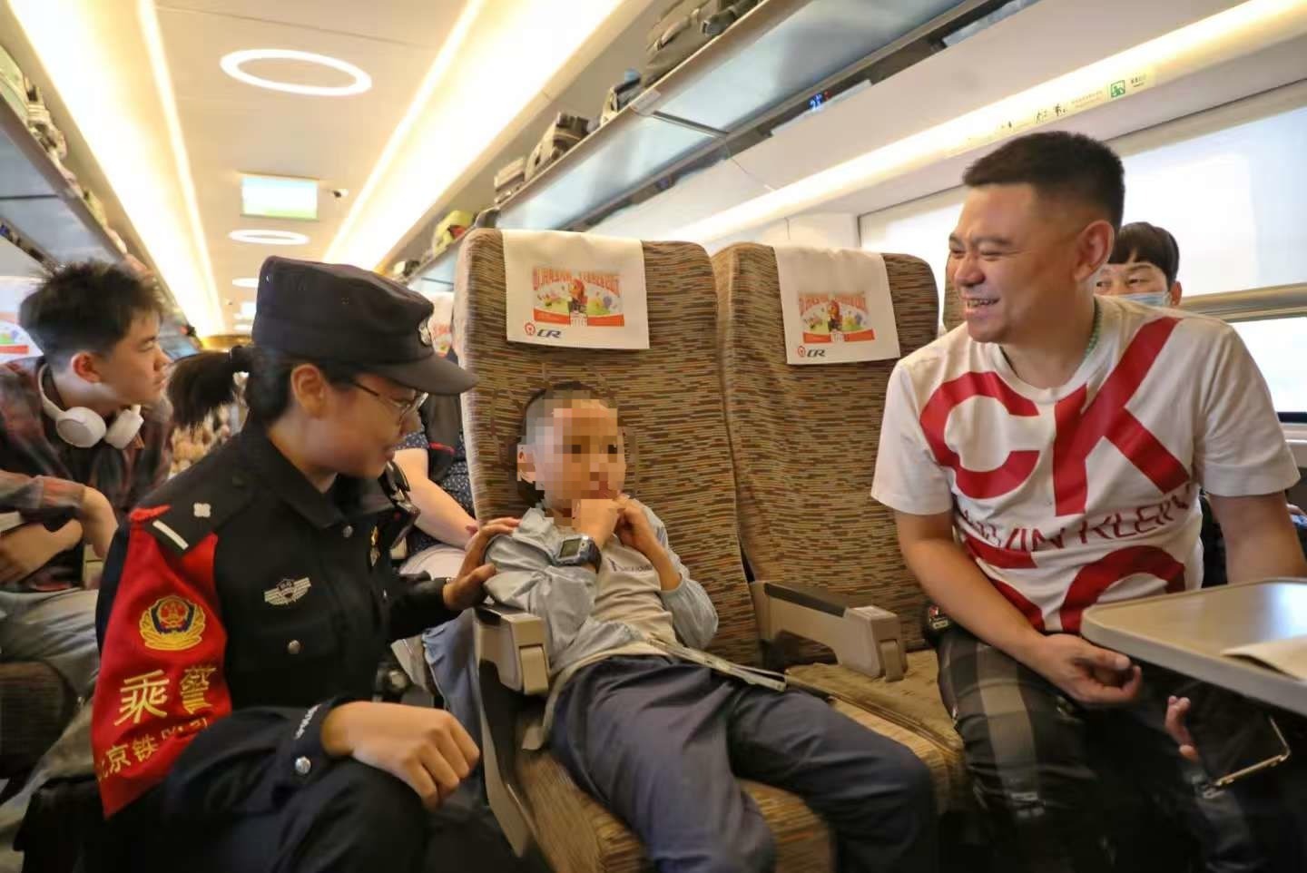 13时49分,列车平安到达上海虹桥站。几趟巡逻下来,寒暄几句,打了几次照面,不少乘客认识了徐晨。“警察阿姨再见。”旅客下车时,还不忘让孩子向徐晨挥手道别。在徐晨看来,这可能就是女乘警的优势,保持威严的同时,又不失亲和力。