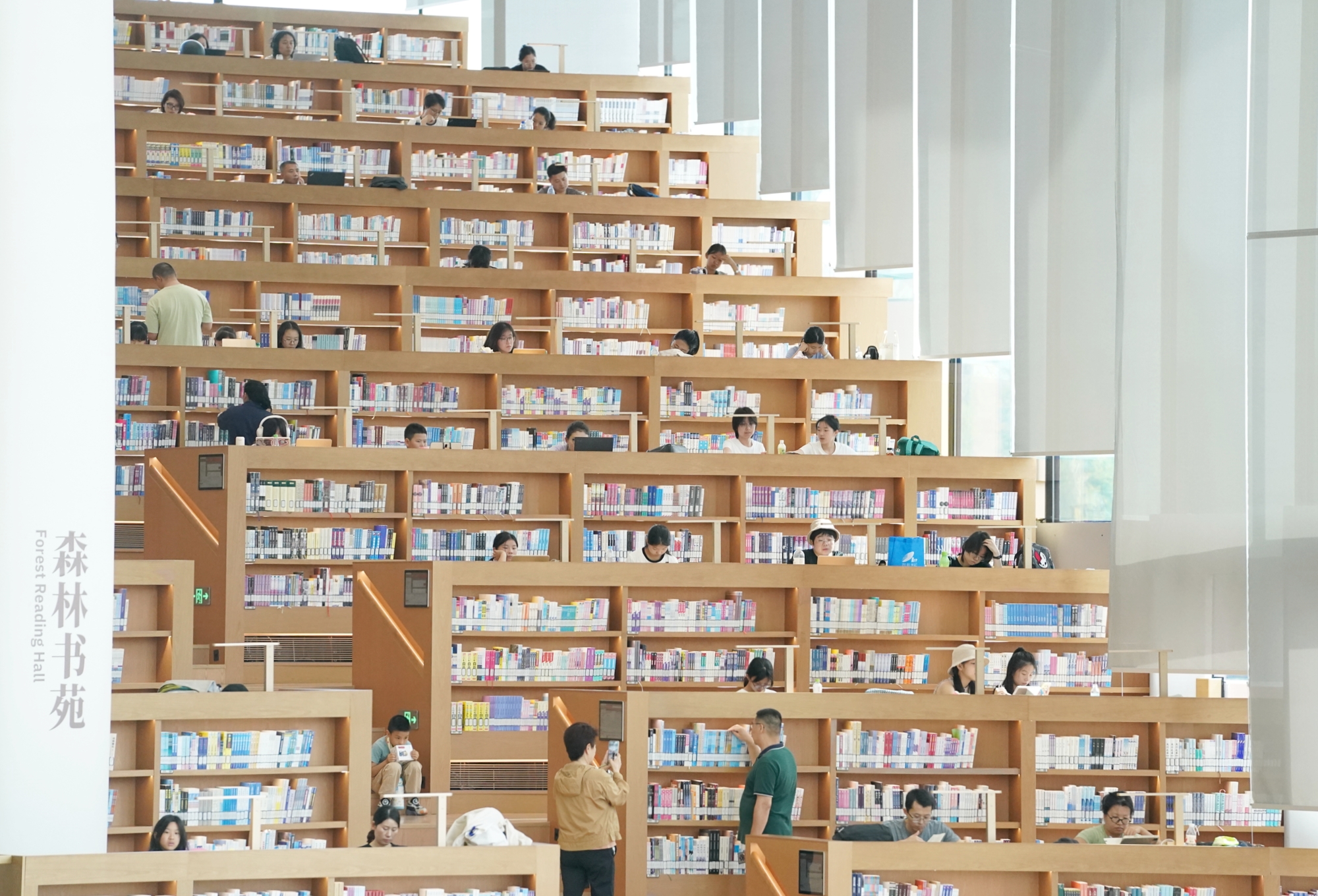 进入山间阅读区、休闲阅读区,大家行动迅速,很快投入到学习、阅读中。高先生一大早就出了门,他想趁着假期学学刑法,“虽然我从事建筑行业,但是我必须懂经济,懂法律。我想先从刑法开始入手,再学习民法。”他说,在图书馆受环境熏陶,学习会更高效。