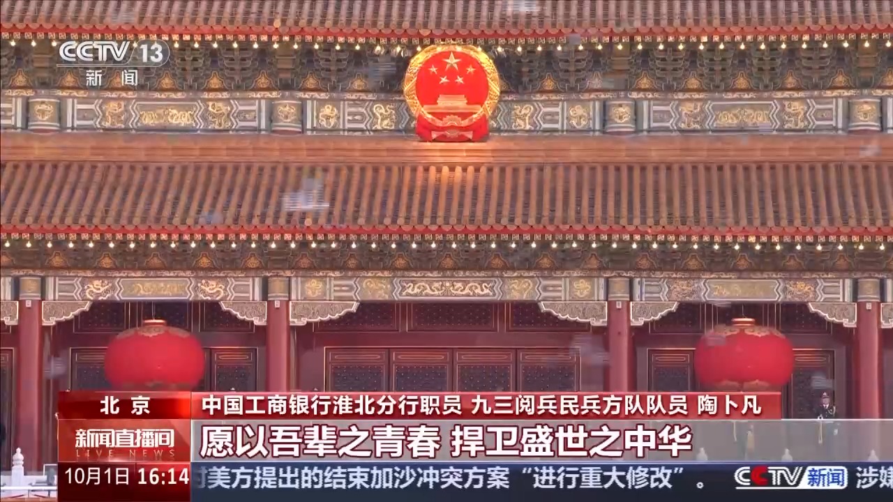 中国工商银行淮北分行职员、九三阅兵民兵方队队员 陶卜凡:在九三阅兵当天,我走过长安街,接受了祖国和人民的检阅,用脚步丈量了对祖国的热爱。在国庆节当天又在晨光里向着国旗奔赴了一场独属于我们中国人的浪漫,内心非常激动。作为一名新时代民兵,也是一名金融行业工作者,我会把这种阅兵精神带到今后的工作中去,投身家乡建设,愿以吾辈之青春,捍卫盛世之中华。