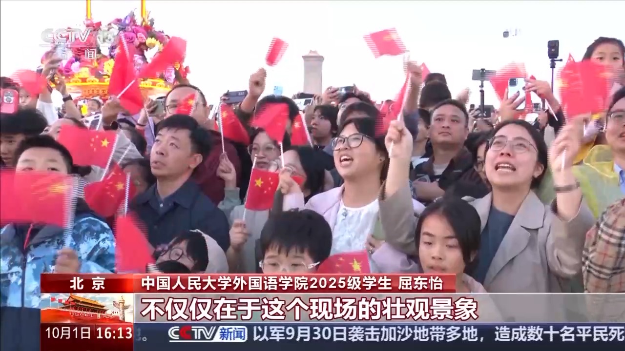 中国人民大学外国语学院2025级学生 屈东怡:非常震撼,它不仅仅在于现场的壮观景象,更在于内心的一种自豪感以及归属感。习近平总书记强调“未来属于青年,希望寄予青年”。作为新时代青年,我将积极投身强国建设、民族复兴伟业当中。