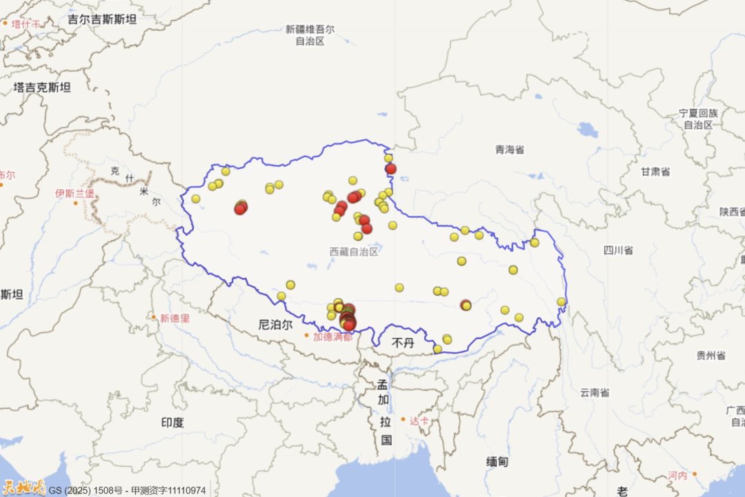 今年以来(截至9月30日),西藏共发生三级以上地震172次,其中3.0到3.9级145次,4.0到4.9级24次,5.0到5.9级2次,6.0级到6.9级1次,最大地震是1月7日在西藏日喀则市定日县发生的6.8级地震。9月,西藏共发生三级以上地震3次。
