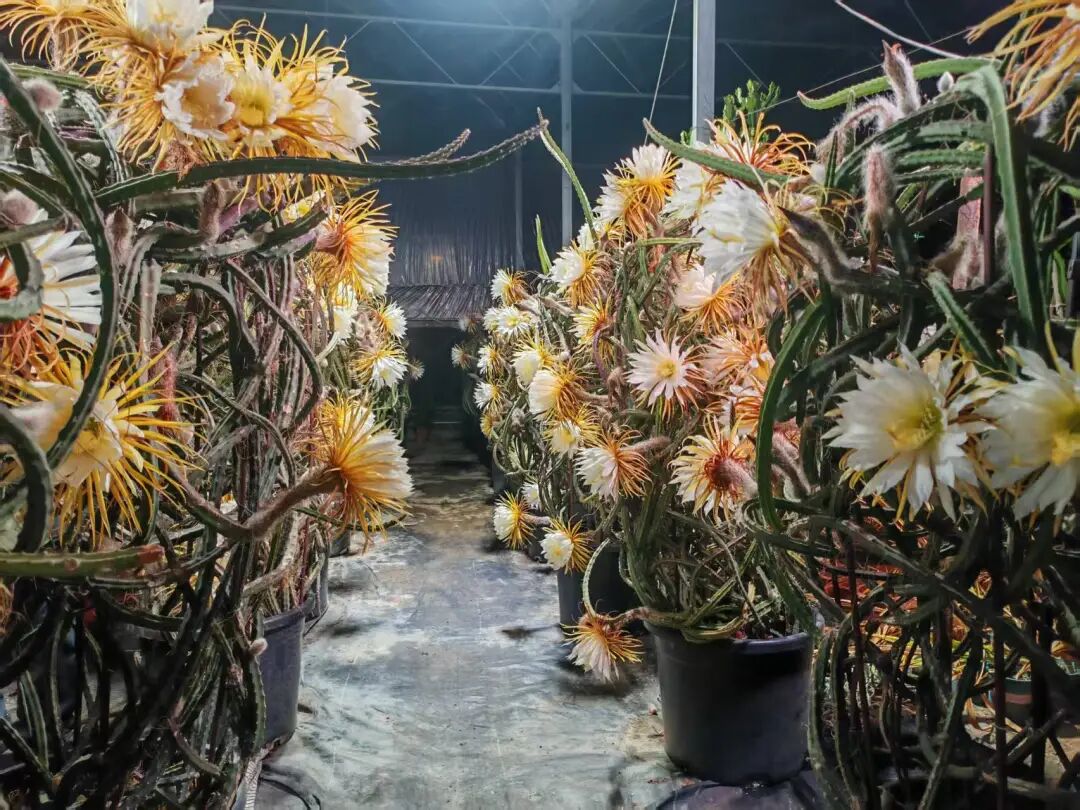 大花蛇鞭柱为仙人掌科(Cactaceae)蛇鞭柱属(Selenicereus)植物,别名夜皇后。大花蛇鞭柱原产牙买加、古巴、海地及墨西哥东部沿海地带。它是一种多年生草本植物,株高可达5m,直径2.5cm。大花蛇鞭柱在夜晚开花,开花时长仅6小时左右,单花仅开一晚,花期极短。
