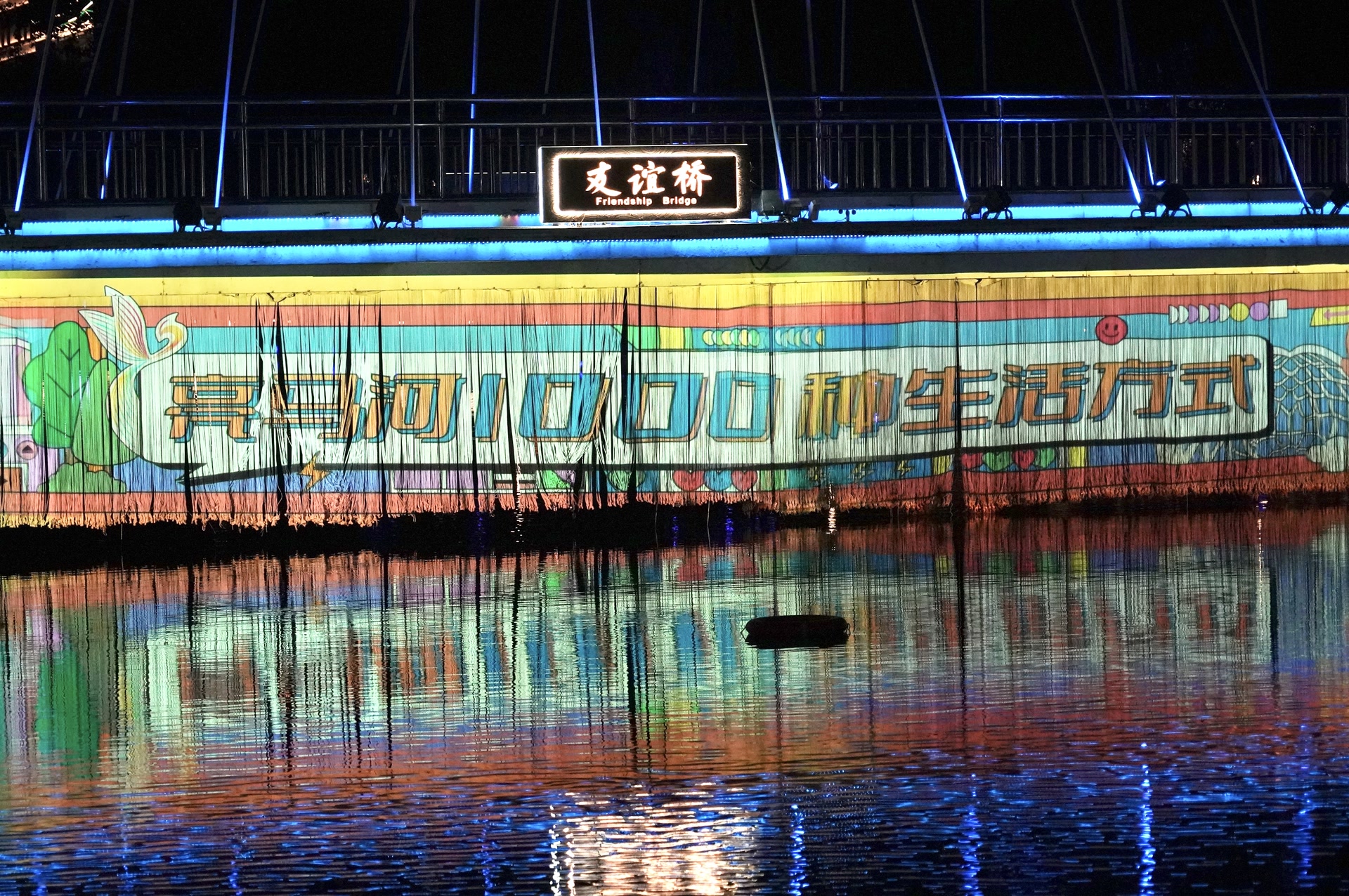 京城的文旅金名片——亮马河沿线同样灯光璀璨。80万平方米的水岸之间,建筑、树木和艺术雕塑,都被柔和的灯光点亮,24座跨河桥造型各异,在光影中愈发拥有了浓郁的艺术气息。