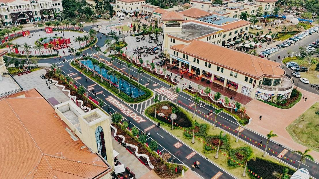 中心湖区周边:如果风情镇内有较大的人工湖或开阔草坪,如澄迈福山咖啡文化馆附近,无遮挡处。