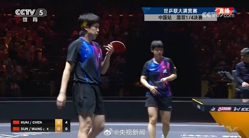 WTT中国大满贯混双1/4决赛,孙颖莎/王楚钦3-0(11-4、11-9、11-5)战胜队友陈恒宇/蒯曼,晋级4强!祝贺,继续加油!