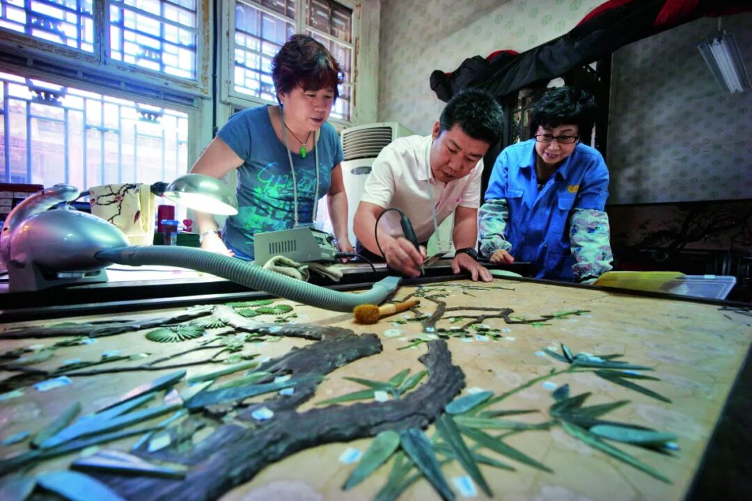 修复之路充满挑战。许多古代工艺已然失传,而修复必须“修旧如旧”,不露痕迹。张铁城回忆,其中一件镶嵌玉石竹子的屏风,正反两面的竹叶雕法迥异——一面的叶筋凸起,另一面则凹陷。“我们修了十年,沉浸其中,才能真正读懂古人的巧思。”