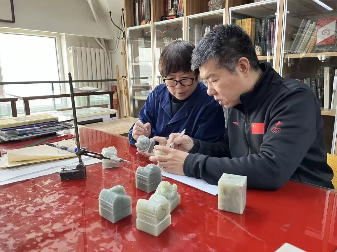 早在2003年,张铁城曾接下北京奥运会徽宝的设计制作任务。其灵感就源于清代“奉天之宝”,而他与印玺的缘分,在上世纪80年代就已埋下。那时,他还是北京玉器厂技工学校的学生,因教室寒冷,常去故宫写生。“我画了几张清二十五宝玺的图,没想到多年后,这几张画成了我中标的关键。”