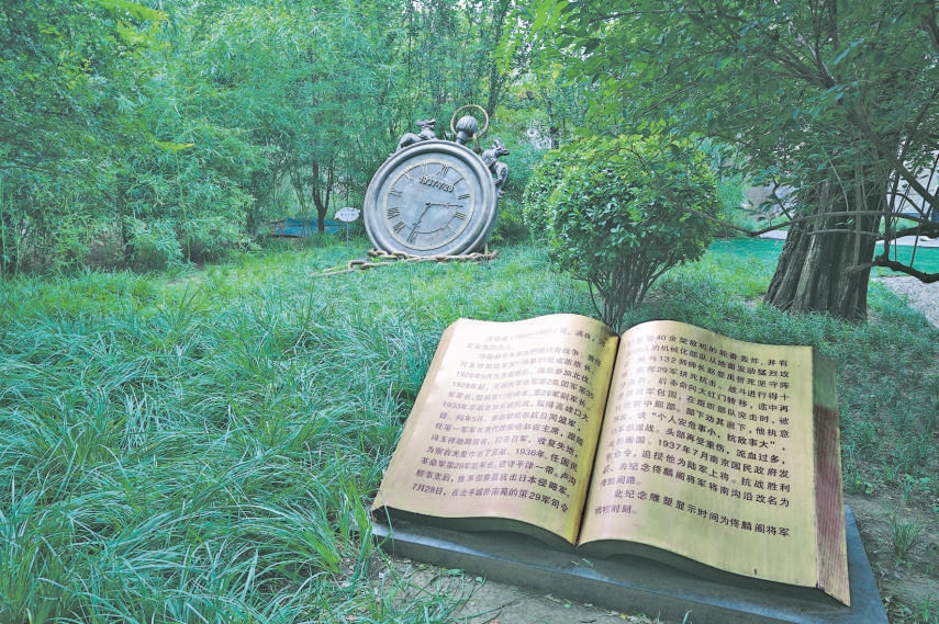 秋阳洒在西长安街的树丛中,一组特殊的雕塑总能留住过往行人的目光。一枚“怀表”的指针永远定格在1937年7月28日14时30分,旁边翻开的“书籍”上,“个人安危事小,抗敌事大”的鎏金大字在阳光下熠熠生辉。这里是大名鼎鼎的佟麟阁路。