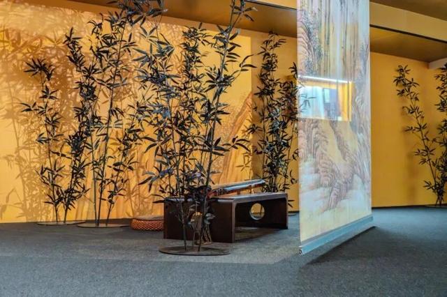 纱幕上竹影摇曳,读者无需精通琴艺,落座后指尖轻触琴弦,便能奏响古曲,同时射灯点亮、“飞鸟”惊起,纱幕渐趋透明,仿佛置身古代竹林与文人共奏;
