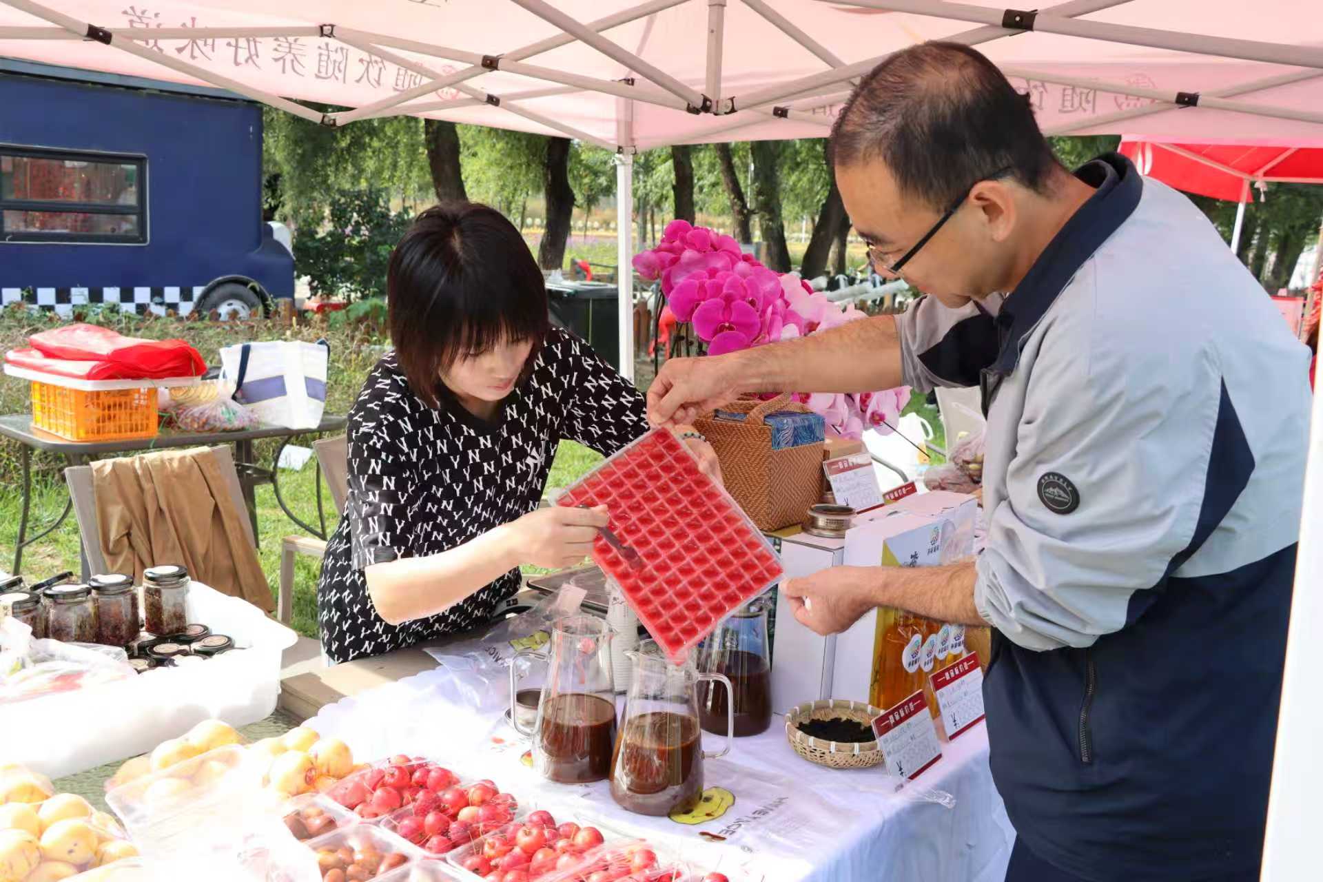 现场,来自爱心100文艺服务队的艺术家倾情献艺。三大庆丰收主题区域同步开放。在宿集·风物市集,富士苹果、冬枣、富硒红薯、杏仁油、杂粮等绿色农产品及血夹菜、五味子咖啡等特色美食琳琅满目。田园·趣味体验区,有玉米脱粒大赛、亲子采摘等农趣活动,让游客亲身体验农耕乐趣。在和美·文化雅集上,剪纸、草编等非遗技艺展示,精巧好看,吸引游客驻足。