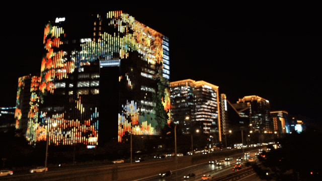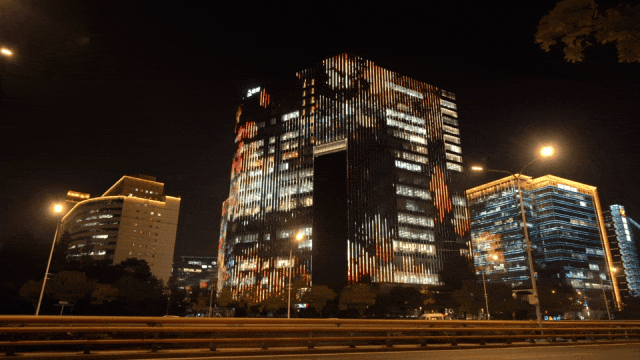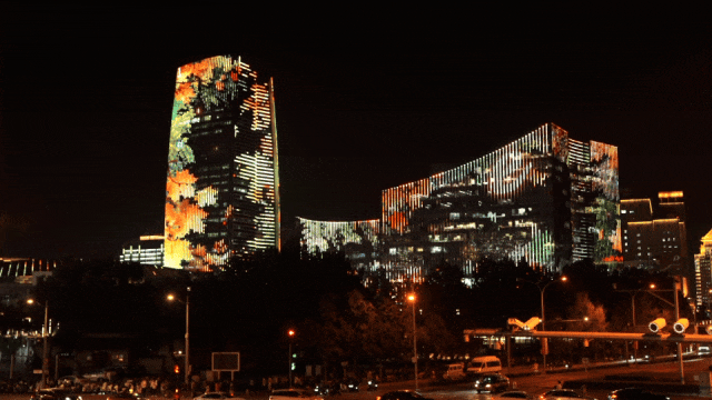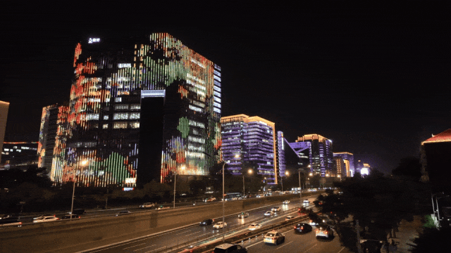据区城市管理委(交通委)广告景观管理科相关负责人介绍,此次国庆灯光秀以中关村广场组团建筑为核心载体,中钢大厦、E世界、鼎好AB座、数码、腾达大厦等建筑形成立面动画联动;而秋日枫叶动画与大街沿线19处建筑、11座天桥及双螺旋灯光氛围联动,呈现整条大街一台戏的效果。