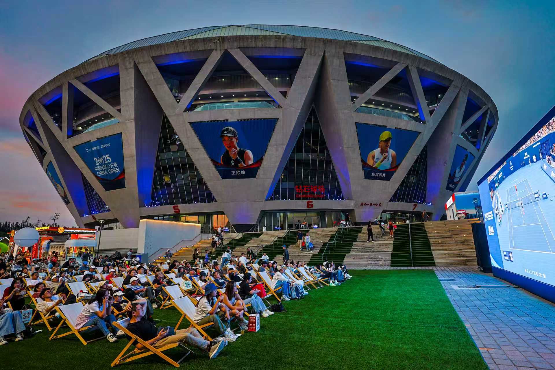 当意大利球员辛纳在男单决赛中兑现赛点,成功夺得2025年中国网球公开赛冠军时,位于国家网球中心园区西广场的“中网之环”户外观赛区,响起阵阵掌声。与数十米之外的钻石球场内的欢呼声“隔空呼应”,将整个园区的火热氛围推向高潮。