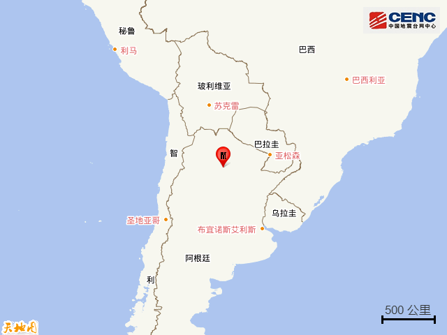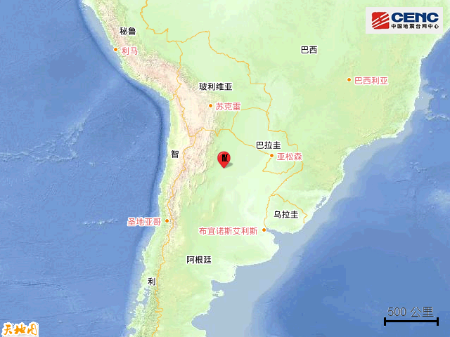 据中国地震台网正式测定,10月3日5时37分在阿根廷发生5.7级地震,震源深度540公里,震中位于南纬26.95度,西经63.35度。